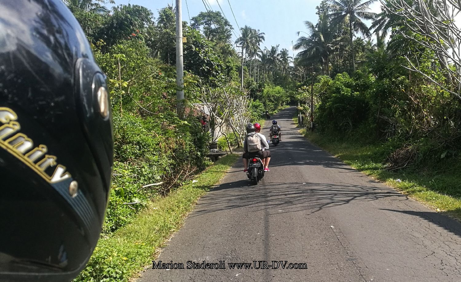 Une boucle de 90km au hasard des routes, pas un touriste à l horizon, des paysages de rizières, de forêt et de plantations, des rencontres avec des balinais ne parlant pas anglais, et ravis d échanger (sans rien avoir à nous vendre lol) , des petits magasins et restaus typiques, le tout en bonne compagnie! Le top!