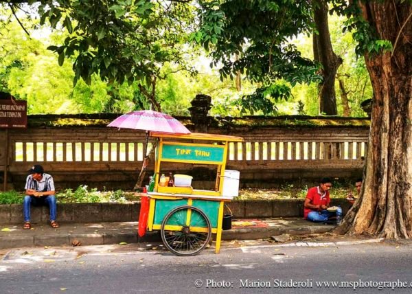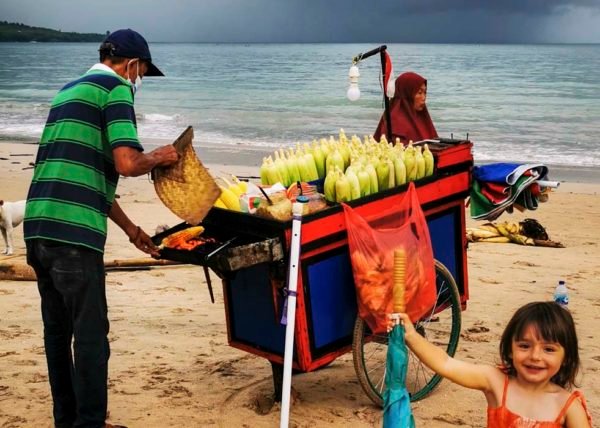 Après le petit-déjeuner nous partons direction Jimbaran pour notre dernière petite étape 😱 Une dizaine de kilomètres et quand même 30mn de route et nous arrivons à notre hôtel, le Open House, plus moderne mais tout aussi joli, 70€, les hotels ne sont pas donnés dans ce secteur mais nous voulions finir comme à chaque fois, près de la plage pour des soirées sur le sable 😍. Matinée relax à la piscine, puis nous sortons à midi à la recherche d une laundry, histoire de faire laver tout notre linge avant le retour 😜 Durant le voyage je lave à la main presque chaque jour, mais c est pas nickel. 6kg pour environ 3€, pourquoi se priver ?! Sur le retour nous tombons sur des warung barbecue, miam, nous faisons escale, et un repas pour 3€. Un jeune homme nous offre un fruit du dragon, et nous achetons des klepon (c est comme les dadar gunlung mais version en petites boules 😋). Un peu de vie locale en chemin, j adore tous ces vendeurs et warung ambulants 😍. Lou au dodo, papa au massage, et on continue le repos jusqu'en fin d après-midi...