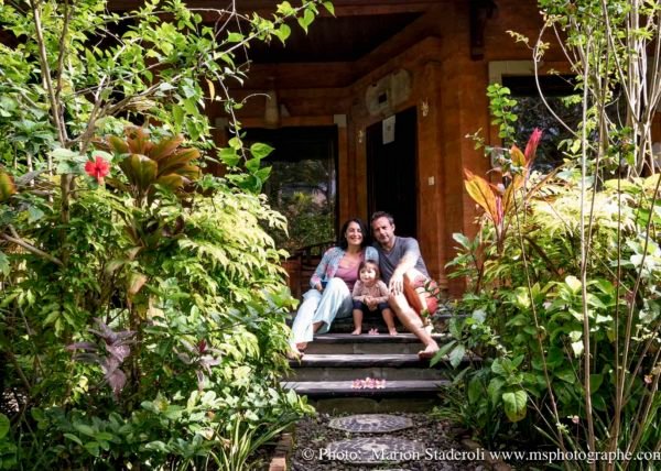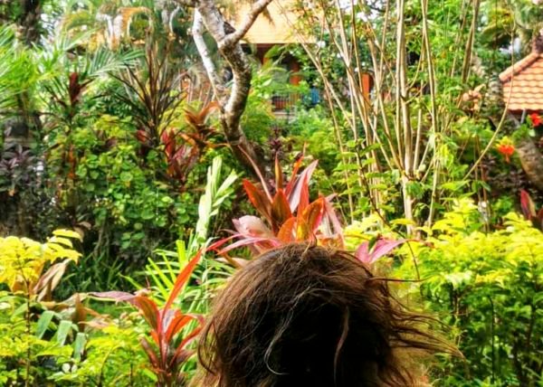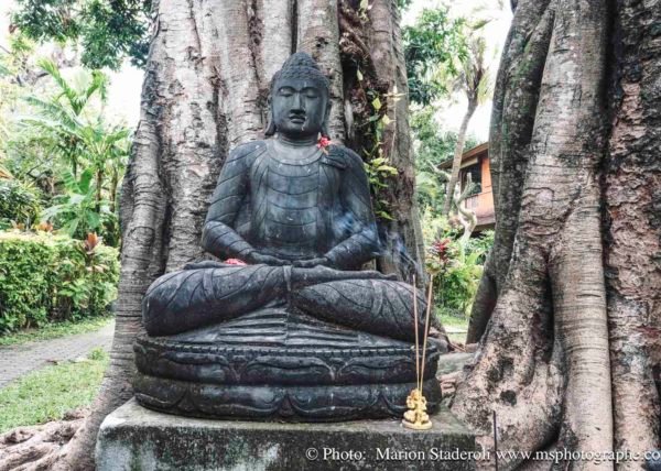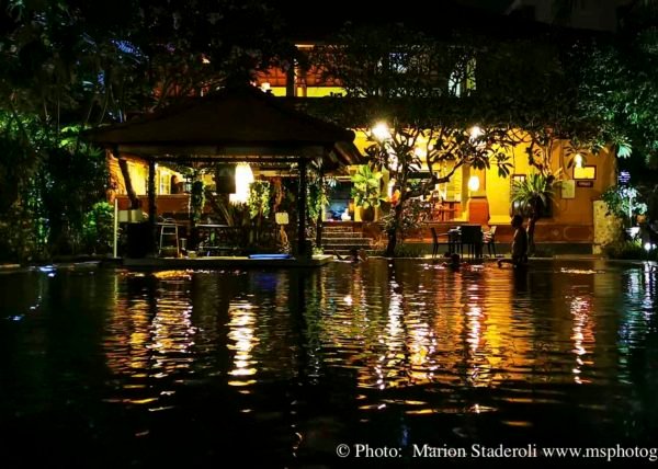 C'est un magnifique lieu, très paisible et qui est vraiment typique avec son grand jardin tropical et ses pavillons balinais. Mais en plus de ça (je pense que ça joue) c'est la première image que nous avons eue de l'île en arrivant il y a 10 ans, et nous avions été émerveillés. Ca laisse un petit côté nostalgique, un coté on se retrouve là "chez nous comme au début" et on s'y sent vraiment bien.