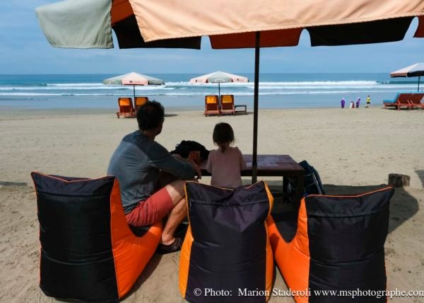 Legian ce n'est pas le lieu le plus intéressant de l'île mais c'est bien lors d'une courte étape pour aller à la plage (mais ça n'est pas du tout la plus belle), voir le coucher de soleil avachi dans un pouf coloré une Bintang à la main (mais chaque soir il faisait une averse à ce moment là !) , faire du shopping dans les innombrables boutiques (mais au saut de l'avion ça n'était pas notre optique !) ou s'en servir comme base pour aller ailleurs avec un chauffeur (pas cette optique non plus).