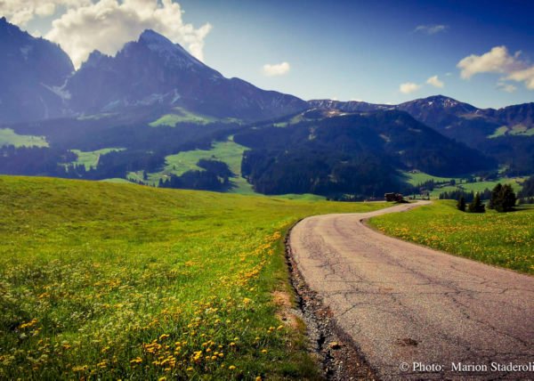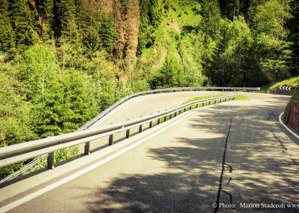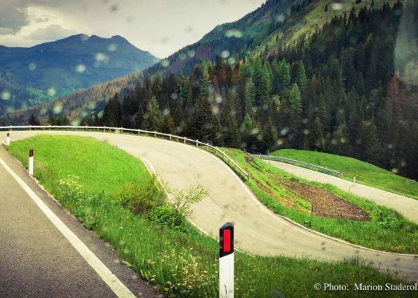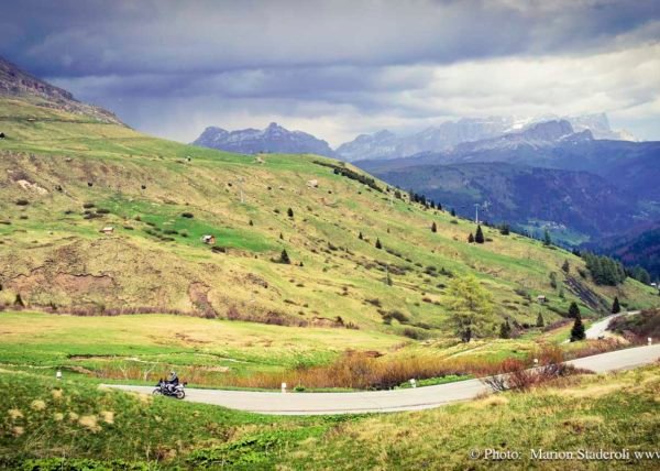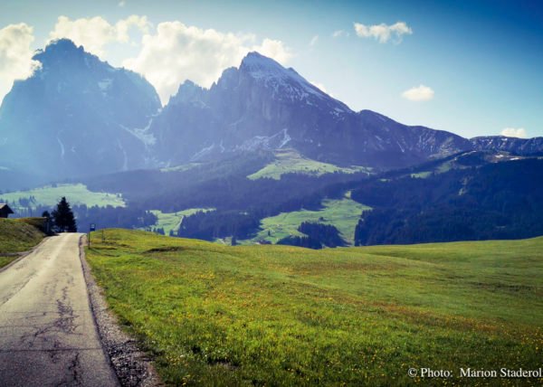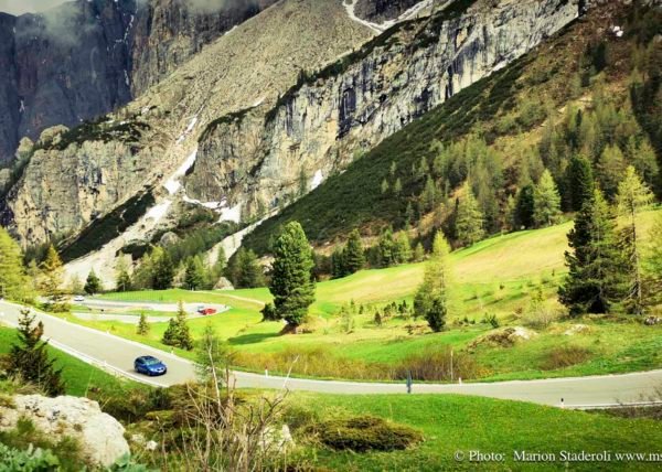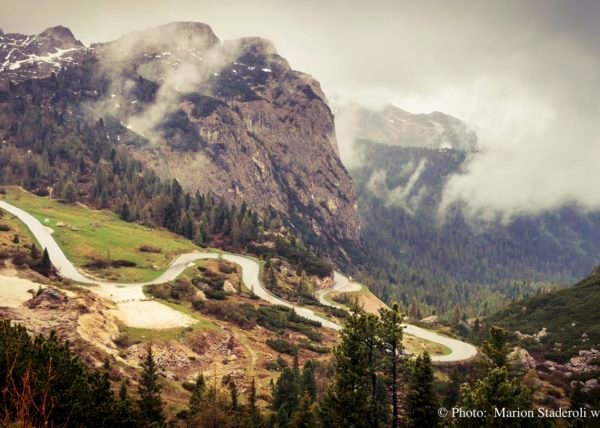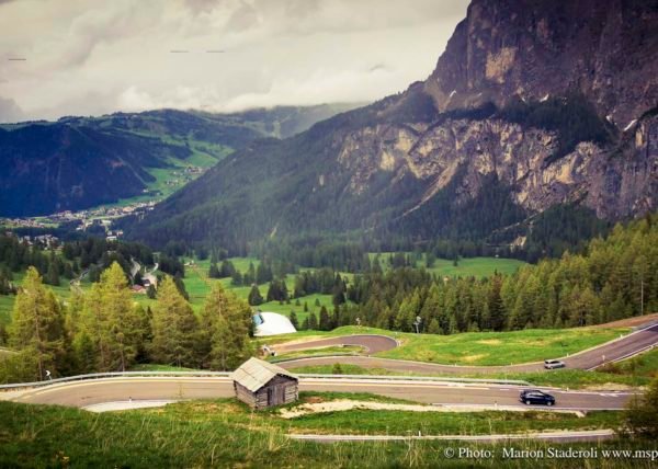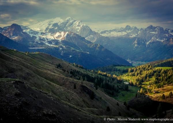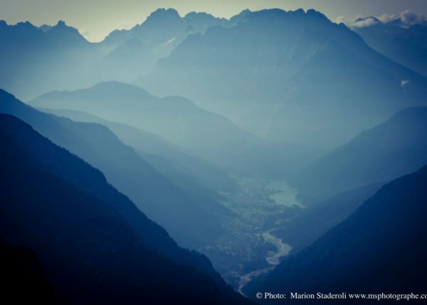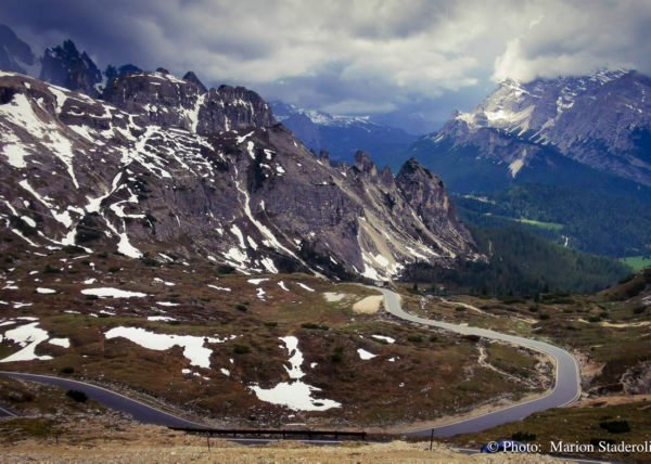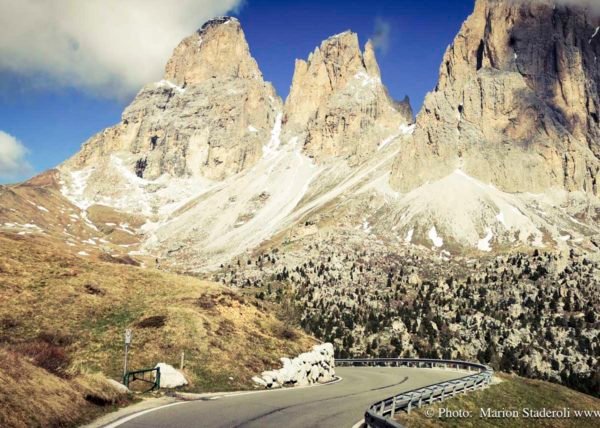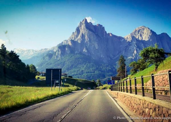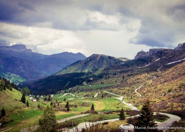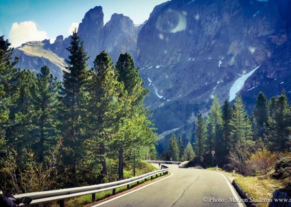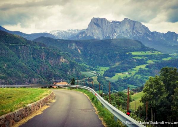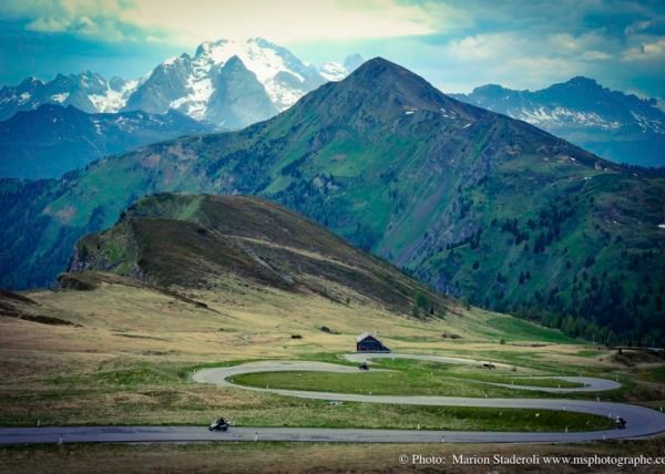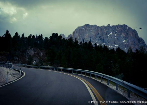 La route serpente et la vue est belle sur la vallée, puis ça y est, les Dolomites et les sommets