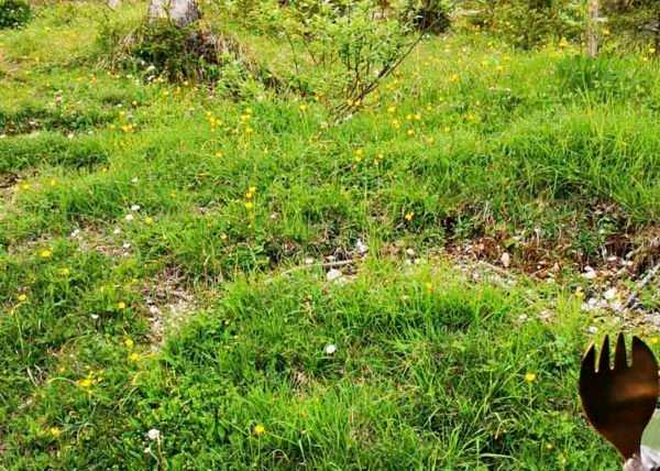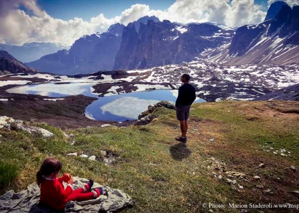 Maintenant il faut atteindre le lac en contrebas à 700m, mais le bord de route est dangereux. On repère des chemins de rando, on va essayer par là !
