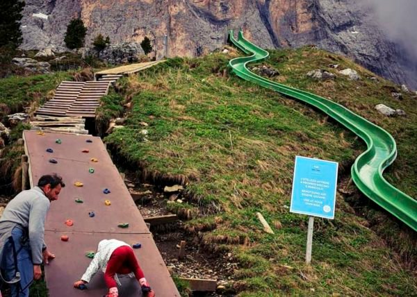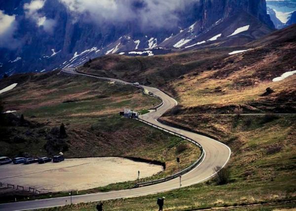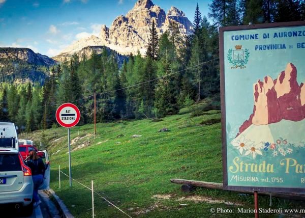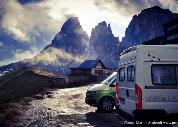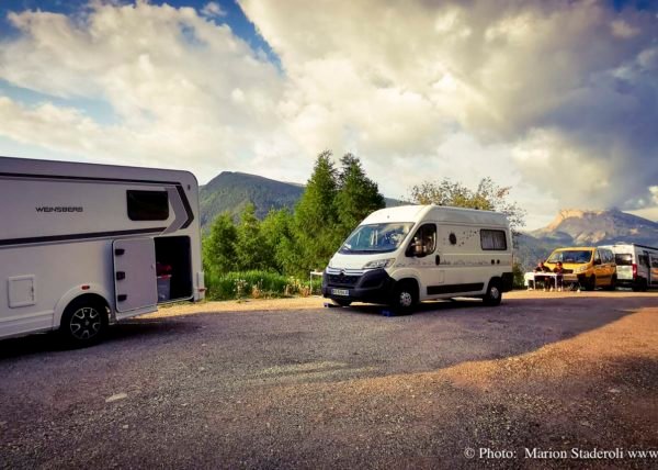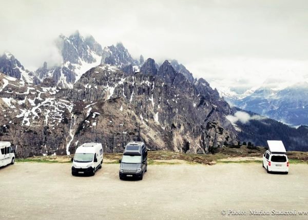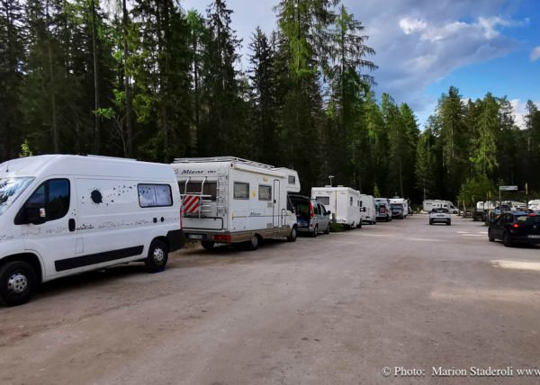 Le stationnement est compliqué dans les Dolomites, surtout pour ce type de véhicules, souvent payant et cher, parfois carrément interdit, et quand on a de la chance, quelques places gratuites, mais peu, et donc prises d'assaut.