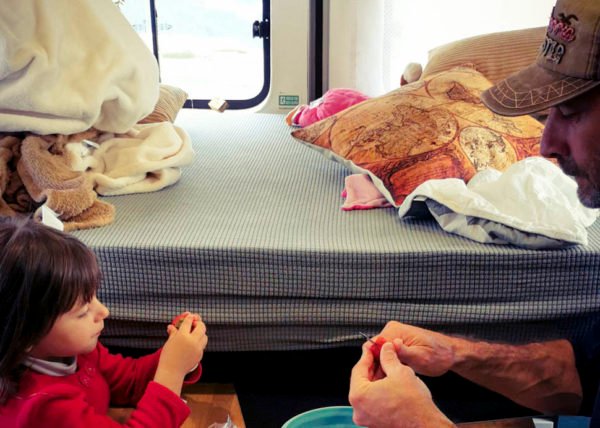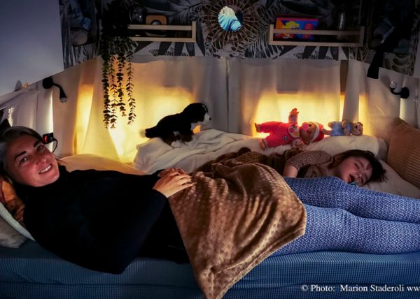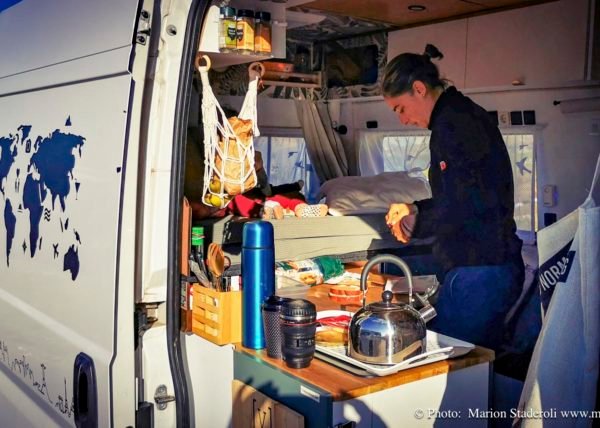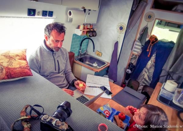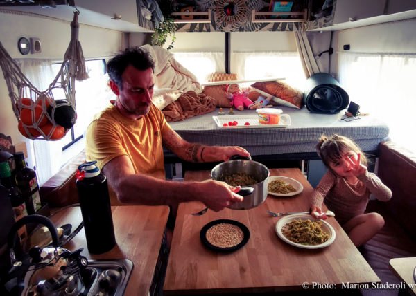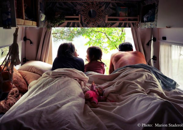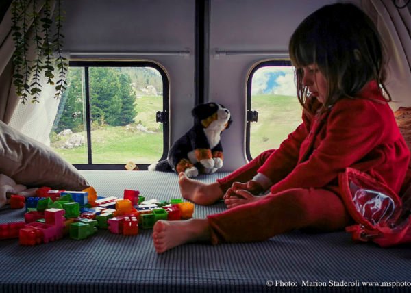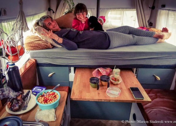 Au début c'était marrant car elle ne comprenait pas du tout pourquoi on changeait chaque jour d'endroit ! Chaque matin ou dans la journée, une fois prêts on lui disait "allez on reprend la route !" et elle répondait "mais pourquoi, on est bien là ?! " et puis ça a cessé, elle a compris et a adopté la vie nomade !