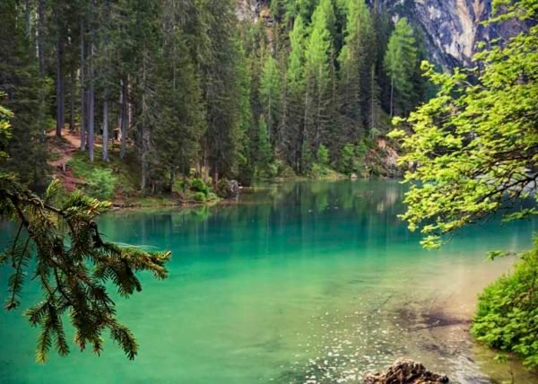 Ouf c est bon, nous voilà devant le chemin qui fait le tour de ce petit lac émeraude