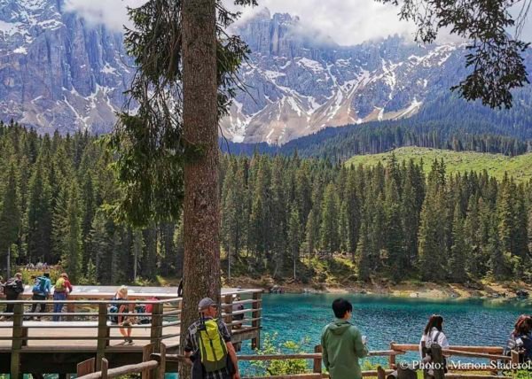 . On avait déjà décidé de zapper le Lago di Tovel, 18€ le parking pour juste une petite balade non merci. Normalement nous devions aller à Bolzano la grande ville de la région, porte d entrée des Dolomites à 1h de route. L idée c était faire le marché, puis prendre un téléphérique pour les "pyramides de Renon". Mais se garer ne sera pas simple, on a pas envie de galérer et plutôt de nature que de grande ville donc d abord direction le lago di Carezza. On ira ensuite directement aux pyramides, et sans téléphérique ça reviendra beaucoup moins cher !