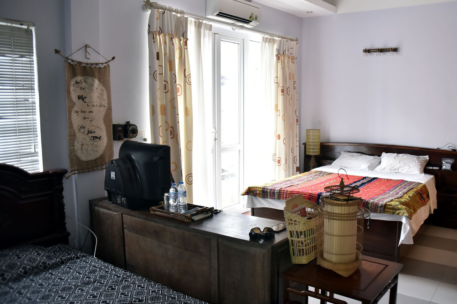 Nous sommes arrivés fatigués après avoir fait la route depuis le nord en moto et avons apprécié revenir chez Huong de « Parfum d’Automne ». Cette fois ci nous avons demandé à être dans leur autre maison, plus près du centre et surprise: cette fois c’est effectivement une vraie chambre d’hôtes (avant le trip à moto nous étions dans un endroit qui ressemblait à un hôtel)! Je lui avait pourtant bien demandé à la base par email à être chez elle lorsqu’elle m’avait dit qu’il y avait deux maisons! Elle parle pourtant couramment Français…
