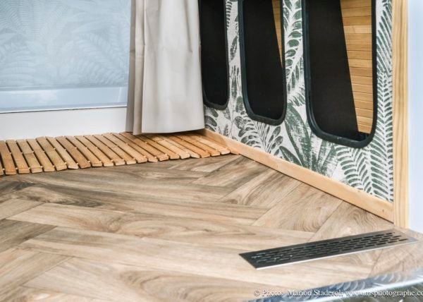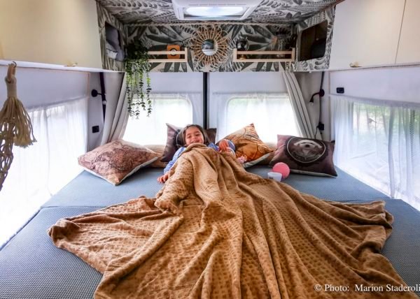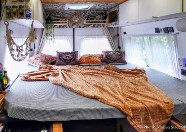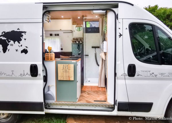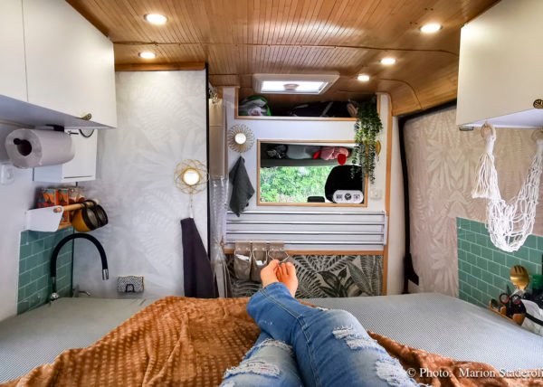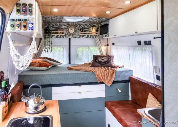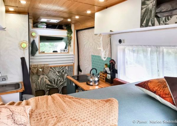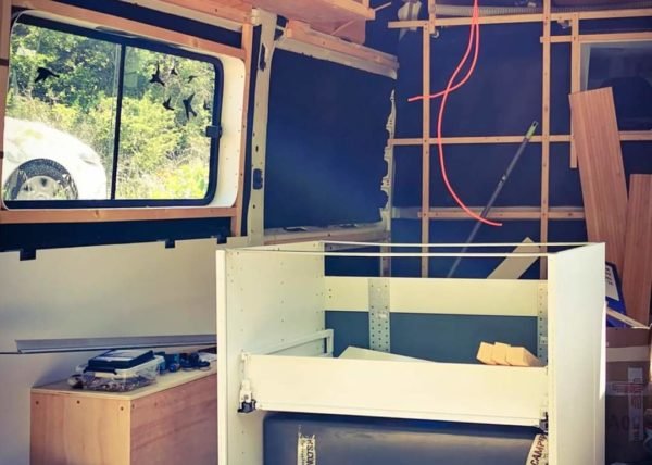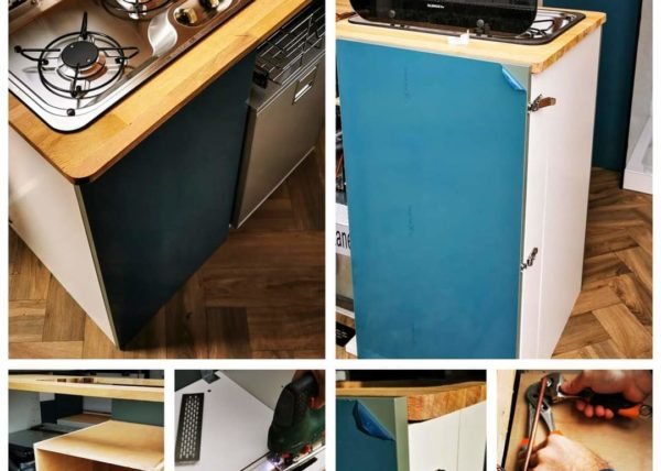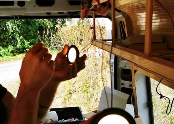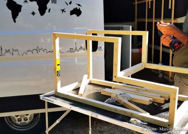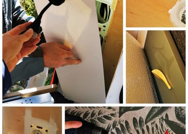 Nous avons tout imaginé et réalisé, sauf une partie de l’électricité (pose batterie, convertisseur et gros câblage) et la pose du chauffage diesel pour lesquelles nous avons fait appel à un pro par manque de temps et peur de faire des erreurs potentiellement graves (et... nous avons eu de gros problèmes de normes non respectées pour le chauffage