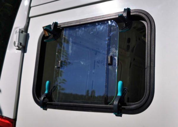 2 grandes baies, 2 plus petites (Apsys), 2 lanterneaux dont un avec ventilateur (Fiamma)