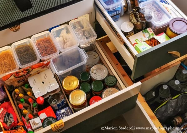 et énormément de rangements ( tiroirs ikea, coffres sous sièges, sous lit et placards hauts).