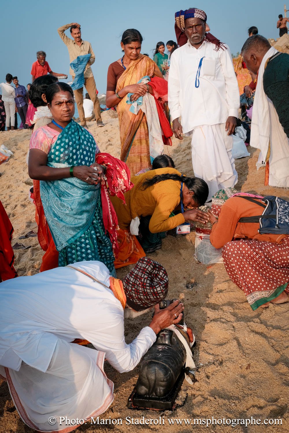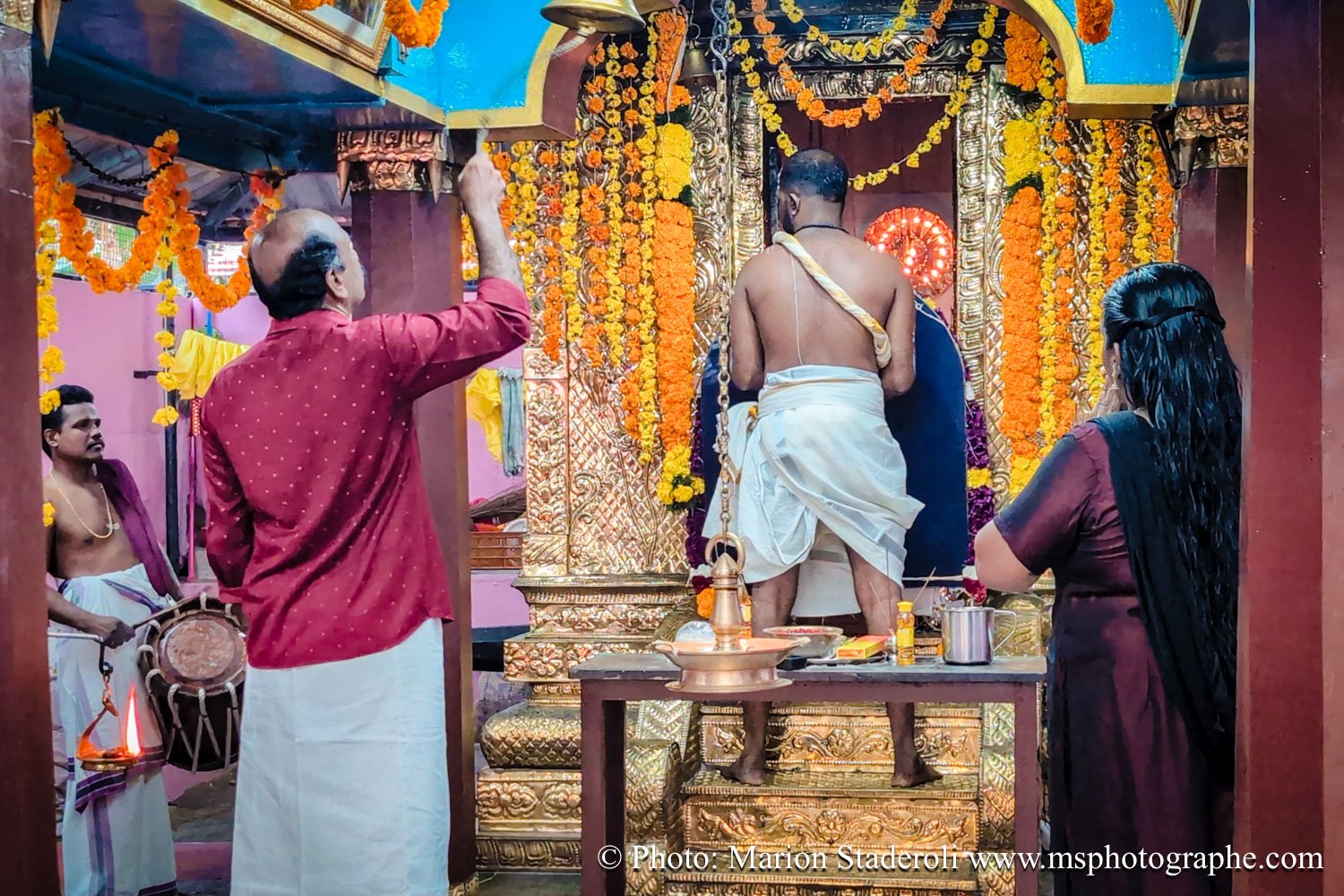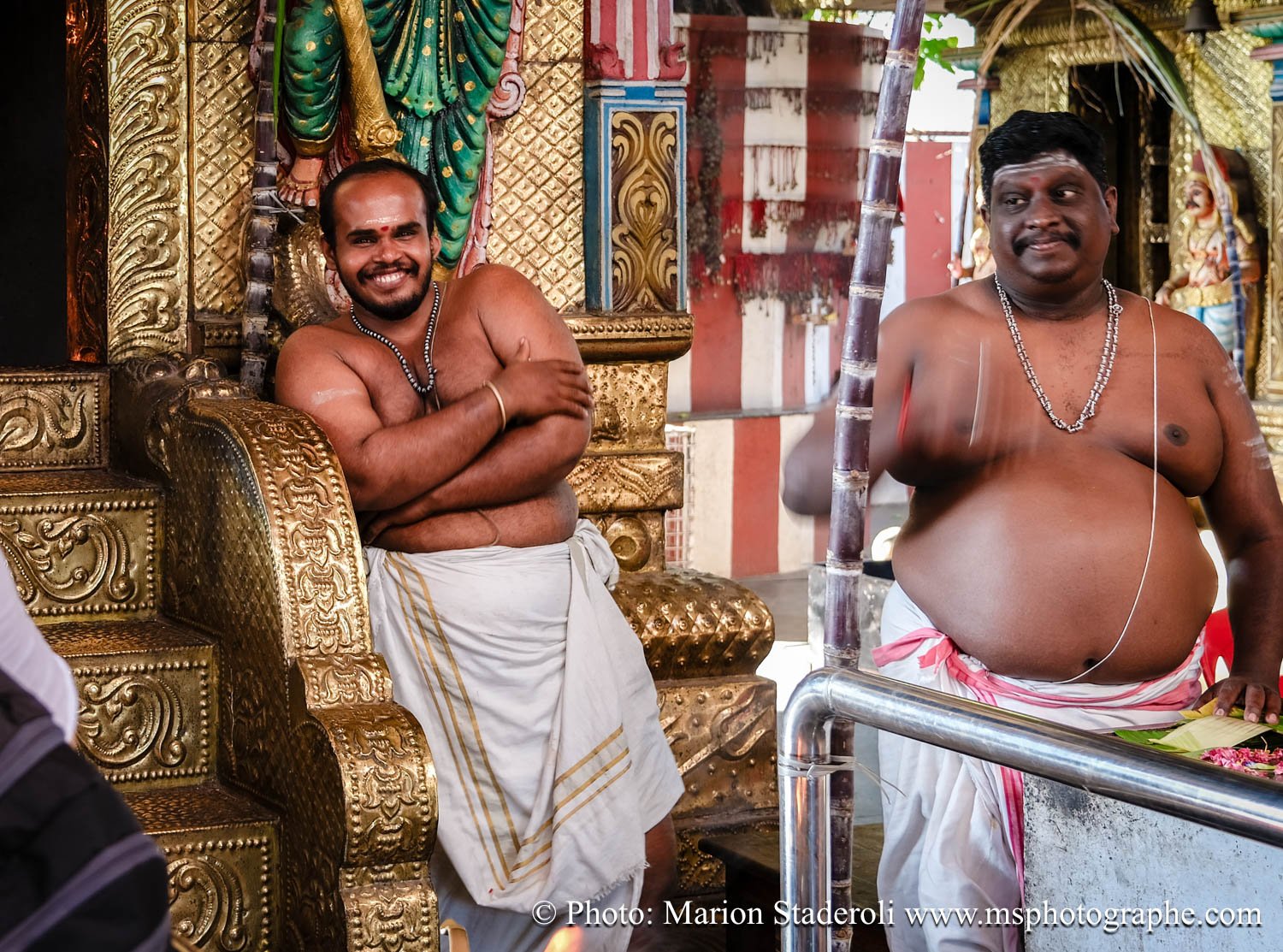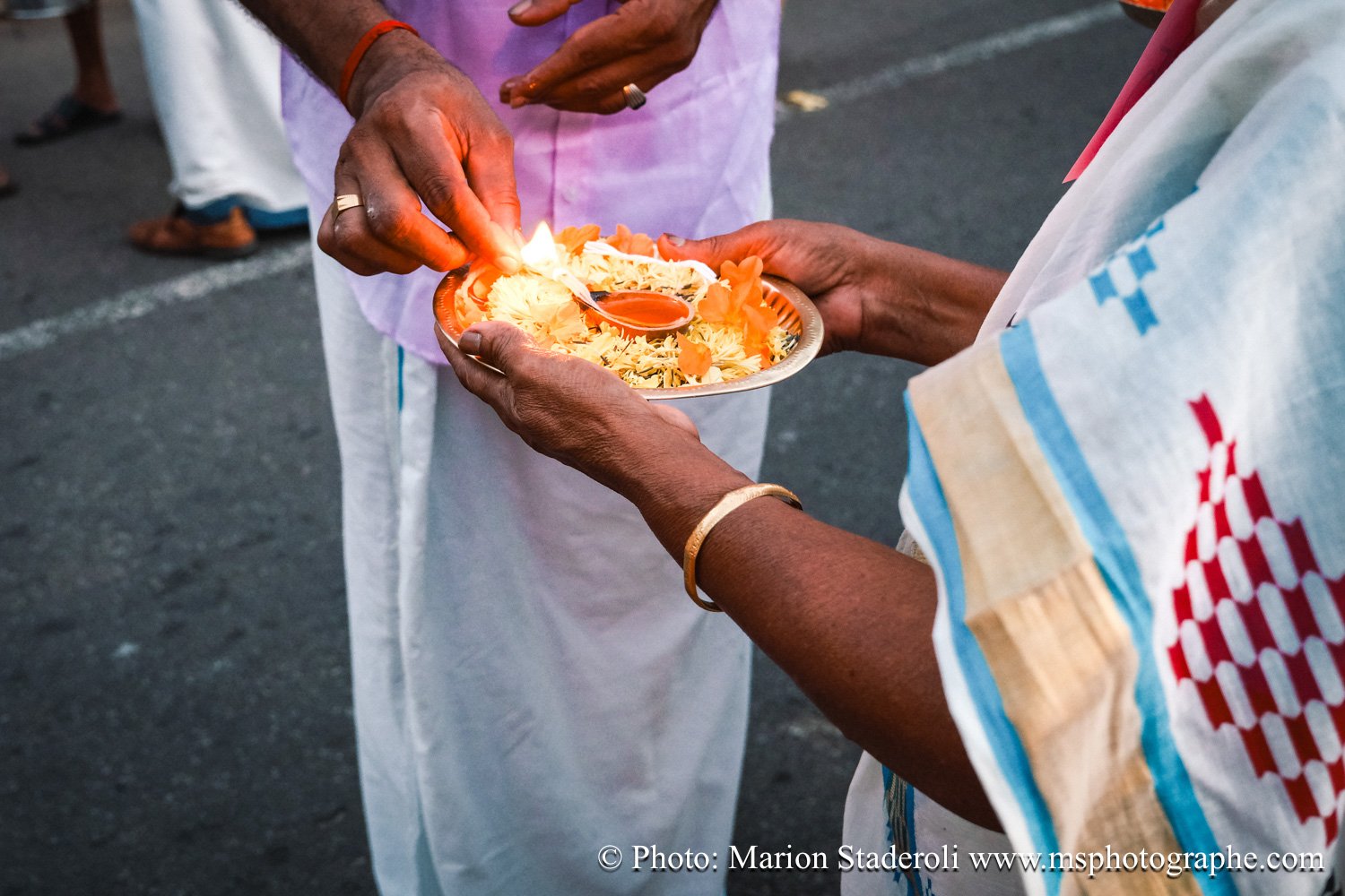 C'est quelque chose de particulier de les voir ainsi, car cela nous procure un mélange d'admiration devant leur beauté et de peine mêlés. Si ce type d'événement était produit pour les touristes, évidement nous n'irions pas, mais là, il s'agit de traditions. Les mentalités évoluent doucement (nous avons pu voir des éléphants "mécaniques") mais malheureusement les croyances sont très ancrées. Il faut savoir que lors de festival, les pachydermes ne sont plus des animaux mais incarnés par de véritables divinités pour les indiens. D'où ce faste et les scènes de liesse autour d'eux... Le fait qu'on soit présents ou non, ne change ainsi absolument rien (nous étions les seuls étrangers je pense).