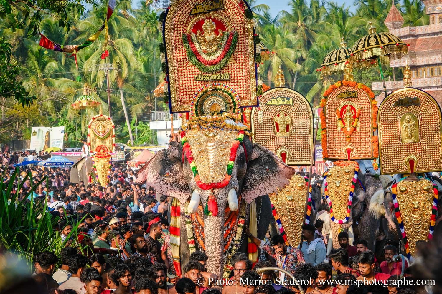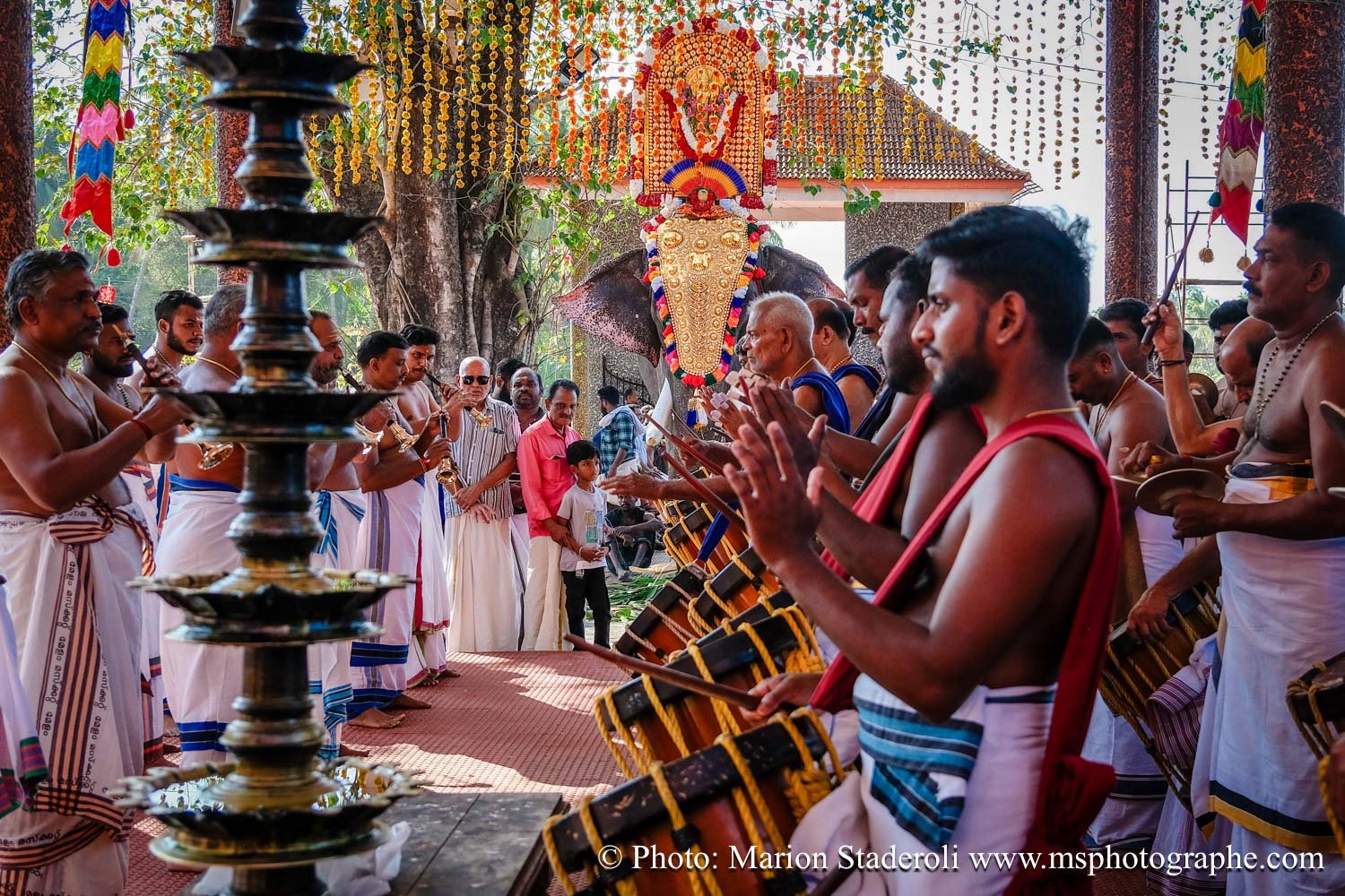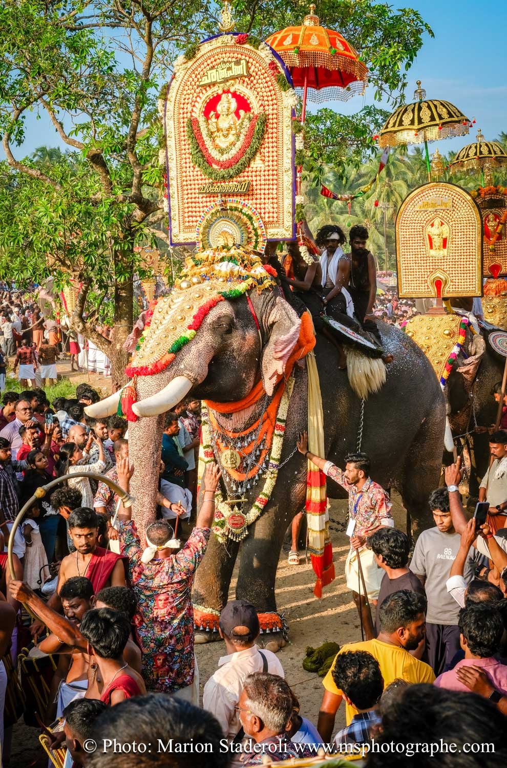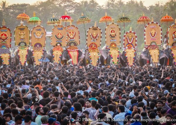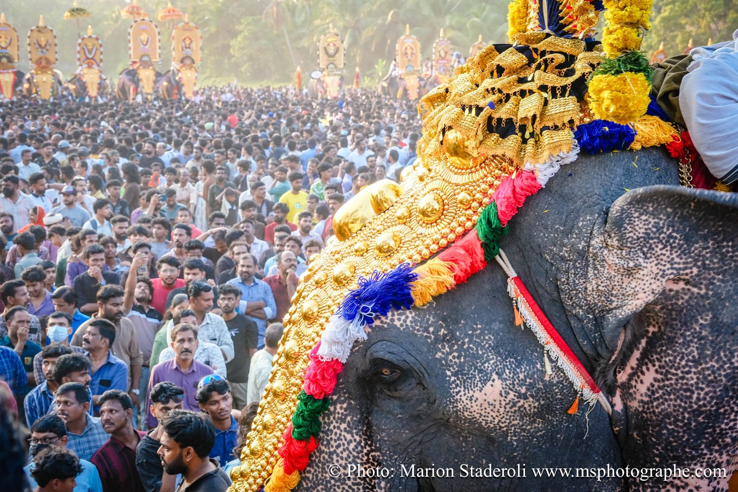 Pour clore ce mois au Kerala en beauté nous avons eu la chance de pouvoir assister un festival (de plus !) monumental: pas moins de 50 éléphants, des dizaines (centaine?) de milliers de personnes réunies autour d'un temple pour célébrer. Incroyable et inoubliable expérience... Le Kerala est exceptionnel pour ça !