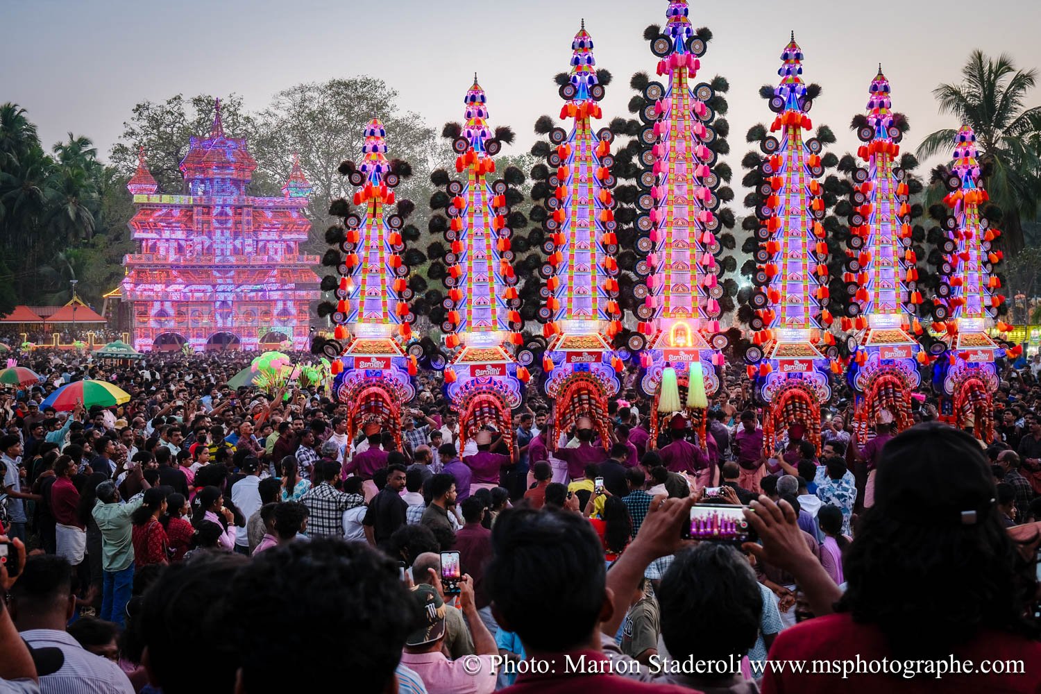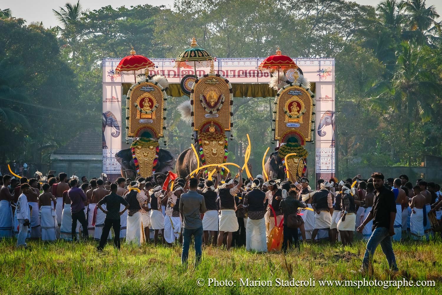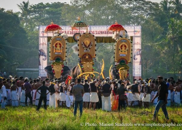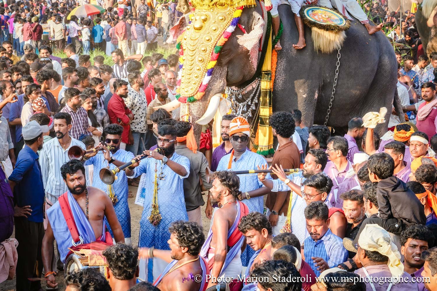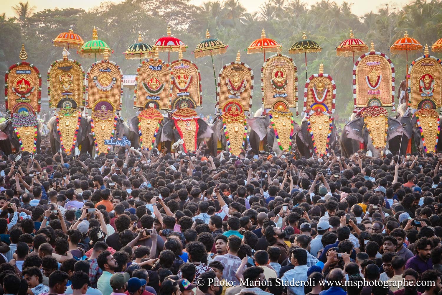 Pour clore ce mois au Kerala en beauté nous avons eu la chance de pouvoir assister un festival (de plus !) monumental: pas moins de 50 éléphants, des dizaines (centaine?) de milliers de personnes réunies autour d'un temple pour célébrer. Incroyable et inoubliable expérience... Le Kerala est exceptionnel pour ça !