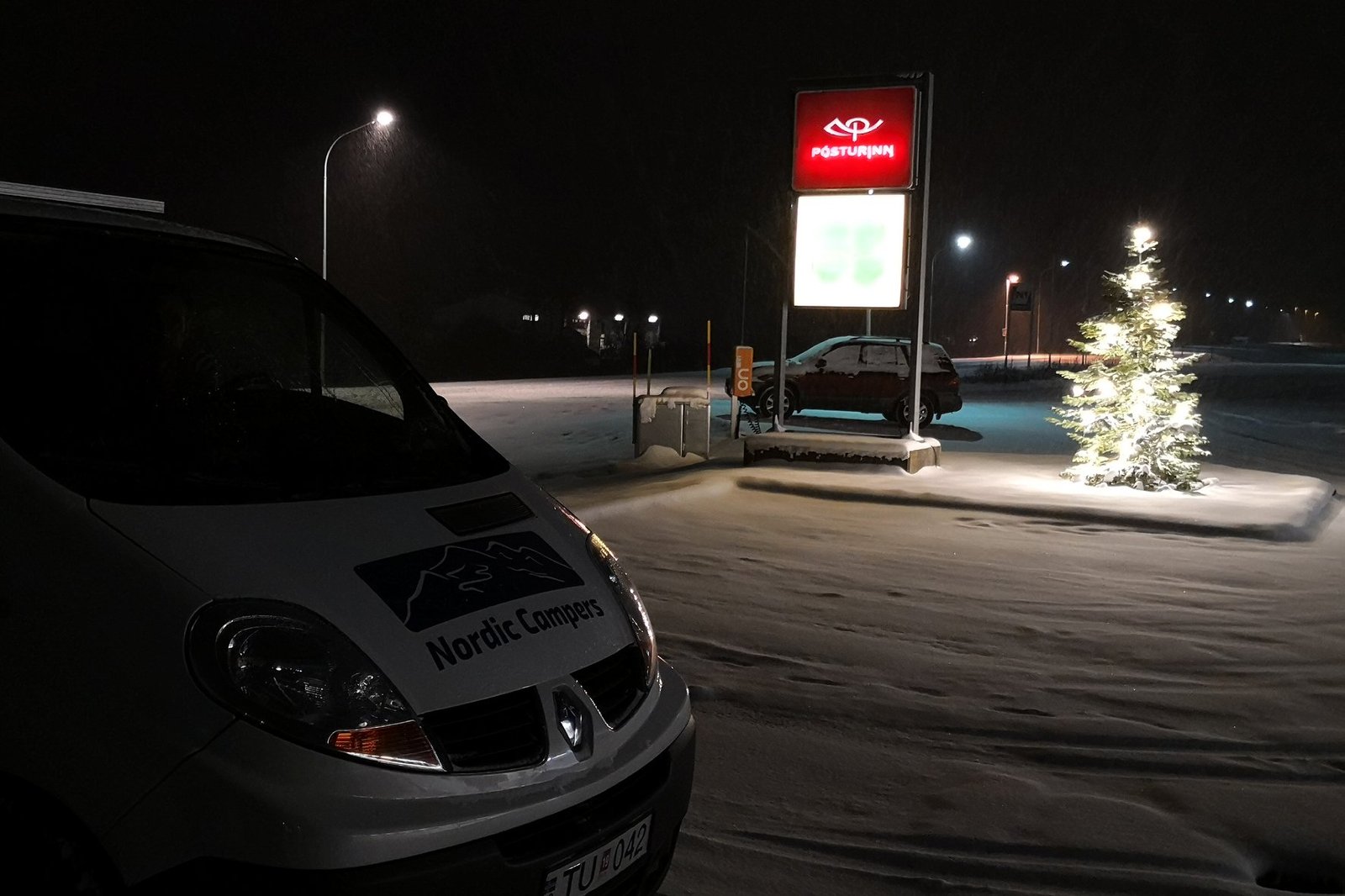 Les voitures et vans sont tous loués avec des pneus neige, cloutés, ce qui permet un meilleur accrochage sur les parties verglacées et surtout une bonne résistance au vent (qui peut déplacer des véhicules!). Nous avons comme toujours utilisé le GPS sur téléphone (Maps-me, en téléchargeant la carte du pays pour l’utiliser hors ligne), et l’avantage d’être en Europe est qu’on a accès à internet via la sim Française.