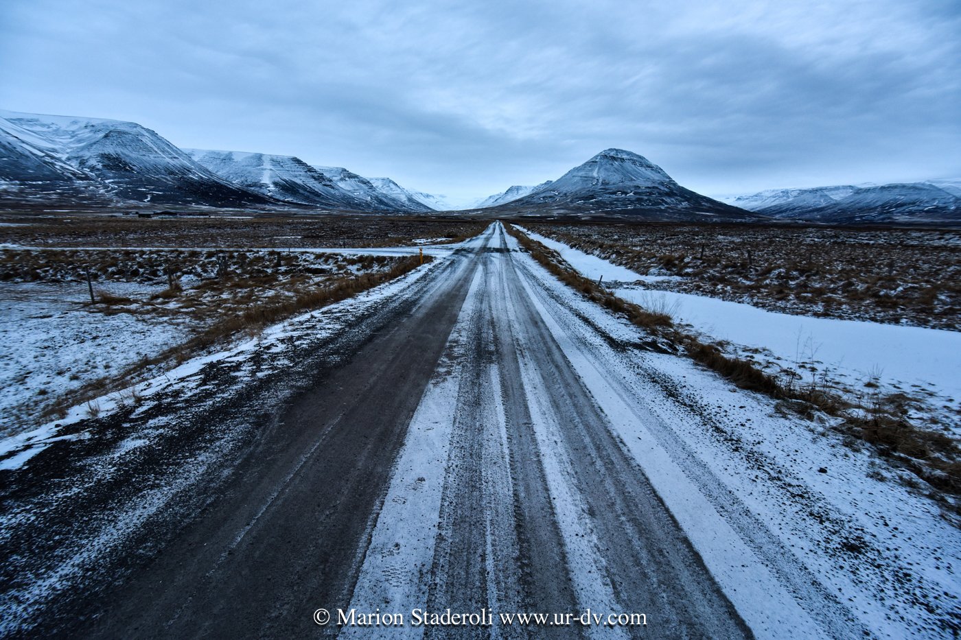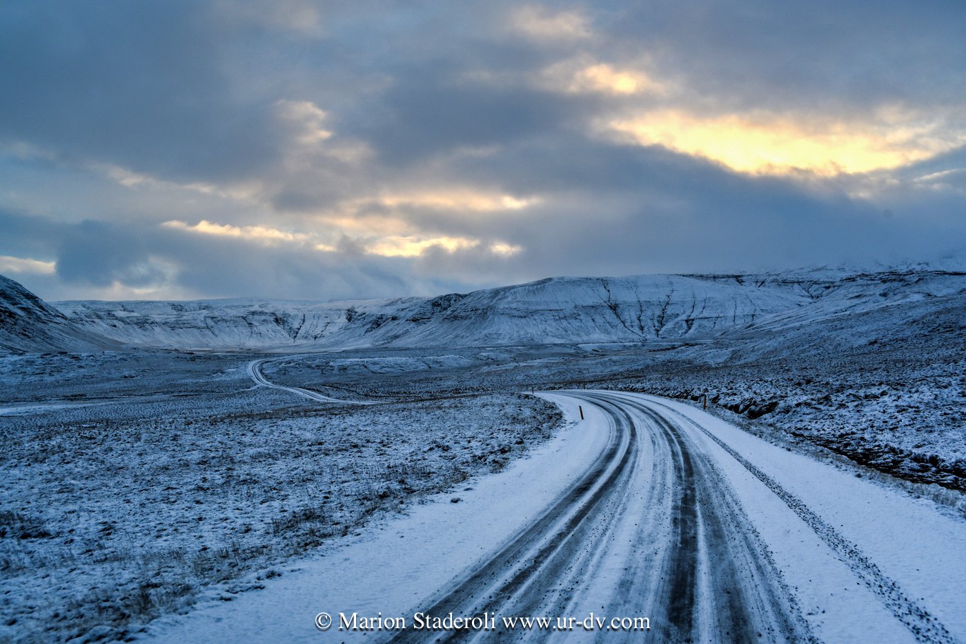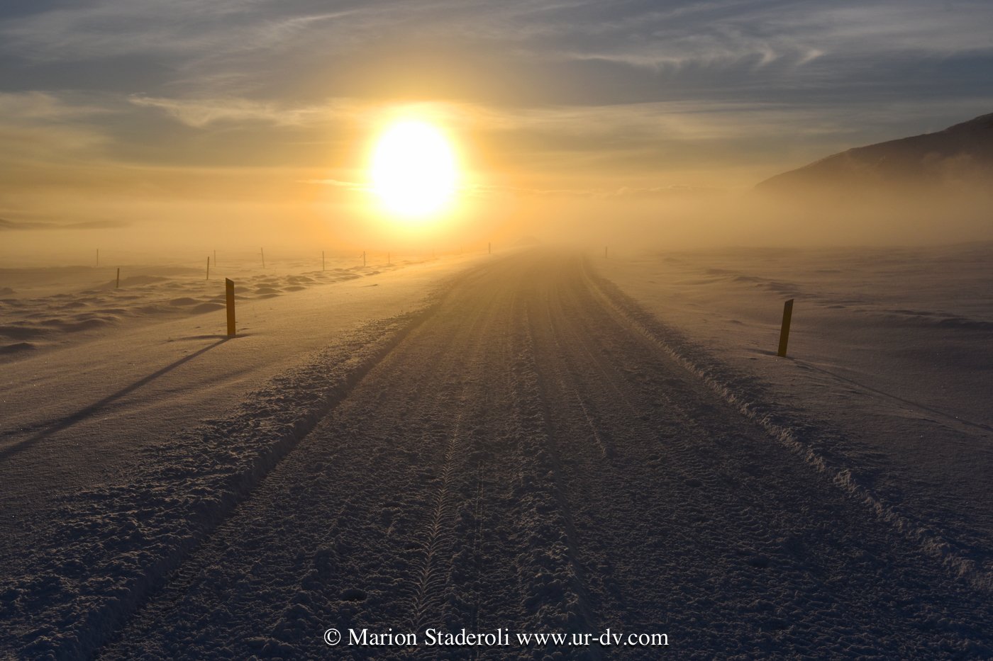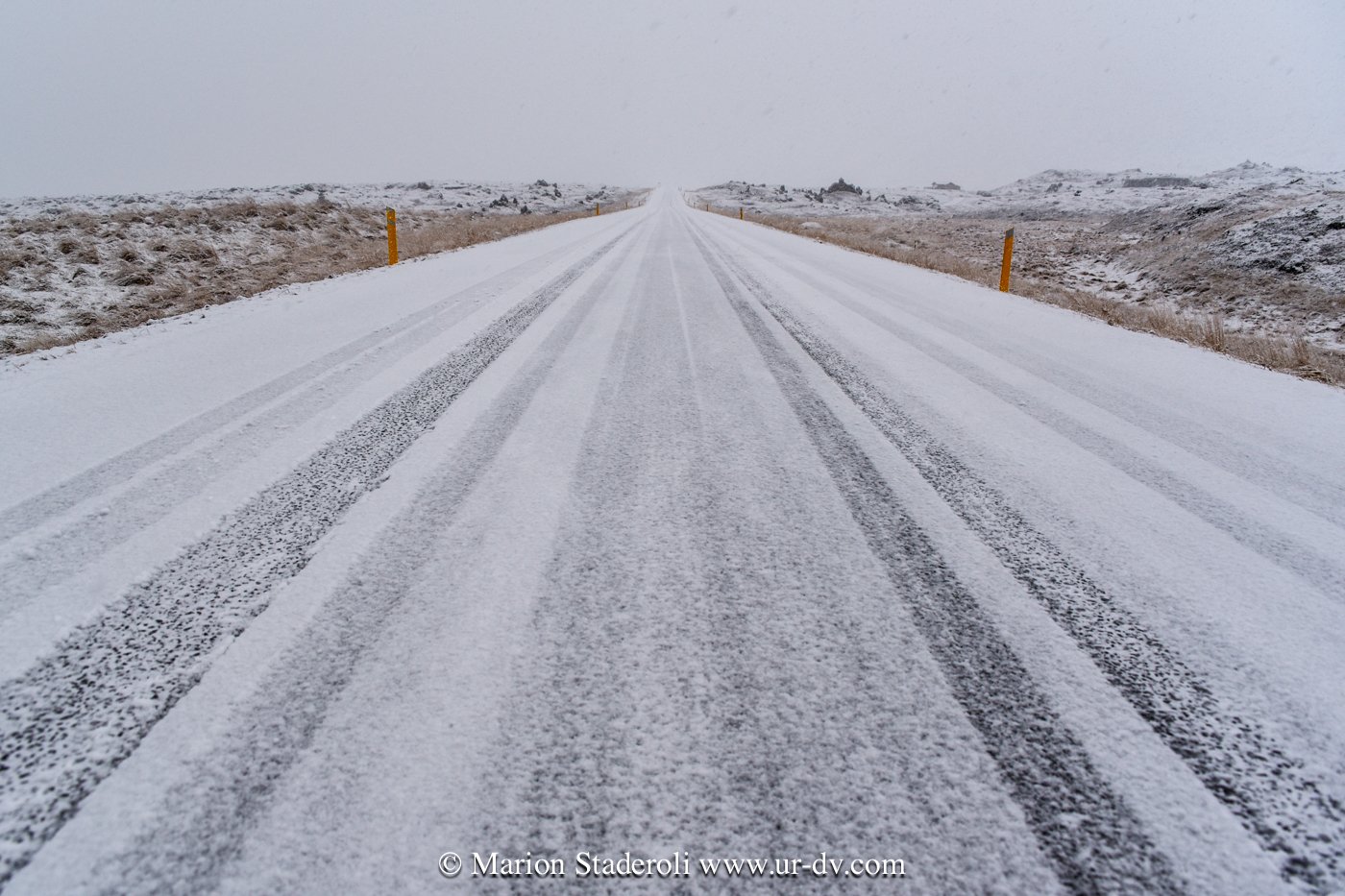 J’ai lu très souvent des messages alarmants sur le fait que conduire en Islande en hivers est dangereux et qu’il faut absolument un 4X4. Franchement… c’est faux ! Nous avons en tout parcouru 2800km, sur la route 1 et sur plusieurs routes secondaires (même parfois non goudronnées) et Antony n’a ressenti aucune difficulté. Au départ nous étions inquiets, mais après avoir testé le freinage et donné quelques coups de volants secs sur une chaussée glissante, nous avons pu voir que tout adhérait bien. Le verglas était bien présent, la neige aussi, néanmoins nous avons gardé une allure de 70km/H de moyenne. Parfois moins bien sûr, car quand on fait face a une belle chute de neige avec vent, et parfois quand il ne fait plus vraiment jour, on n’y voit pas grand chose ! Mais pas d’affolement, on ralentit et tout se passe bien. A une ou deux reprises nous n’avons pas pu emprunter la route prévue à cause de la neige trop épaisse (jusqu’à 10cm ça passe, après c’est plus embêtant, on risque surtout de ne pas réussir à faire demi tour), mais cela est resté marginal sur des routes en cul de sac non entretenues, et ailleurs nous avons vu combien l’action des déneigeuses est permanente et efficace même sur les routes secondaires.