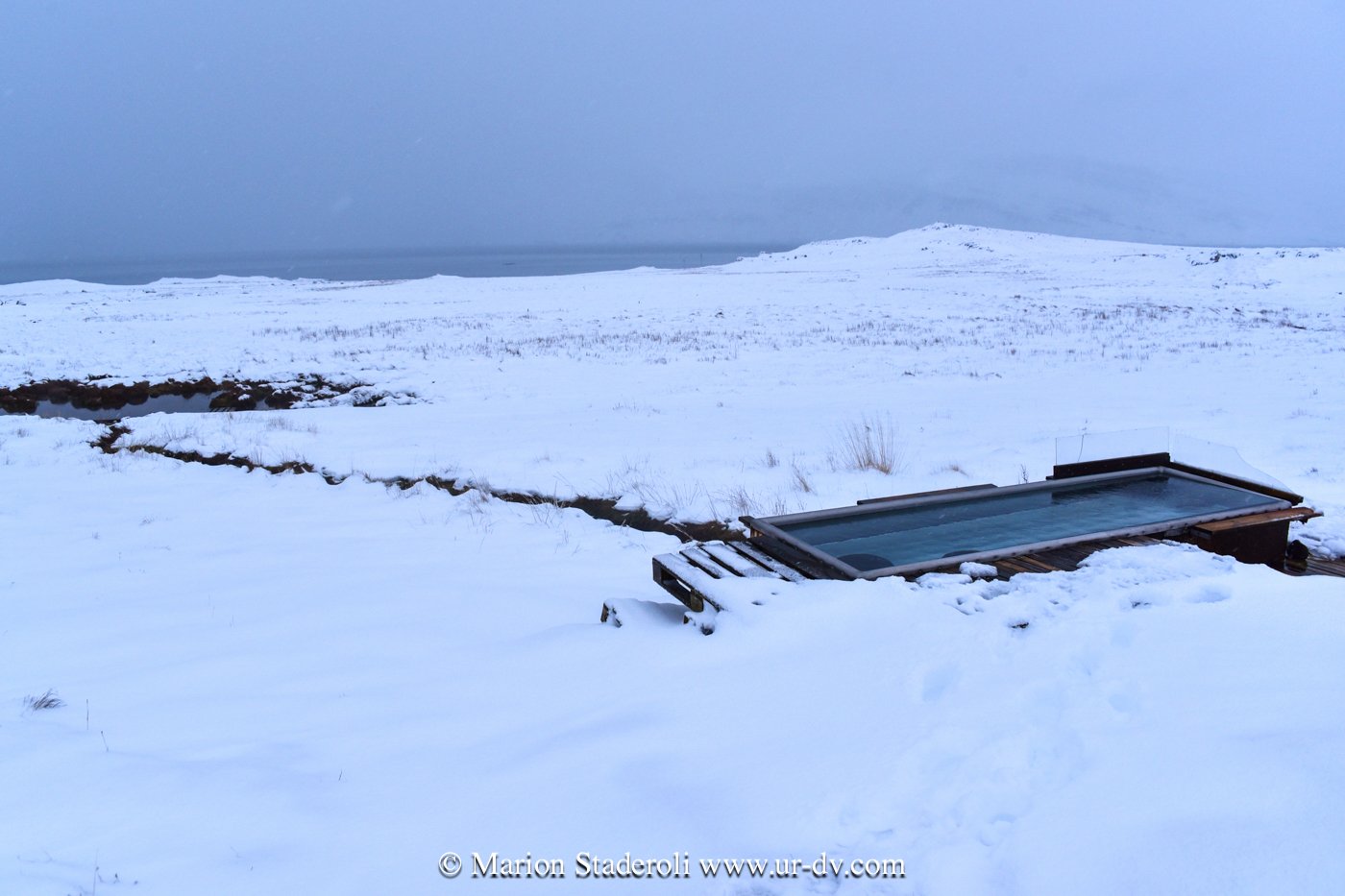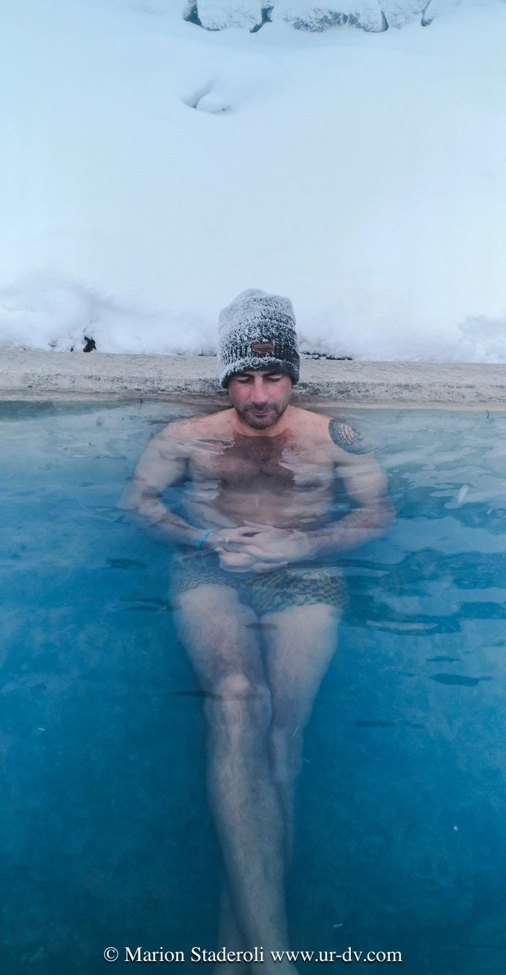 Comment bien finir la journée? Dans une piscine privée (du moins on peut le penser!) bien chaude au milieu de nulle part et toujours sous les flocons! Et le silence absolu…