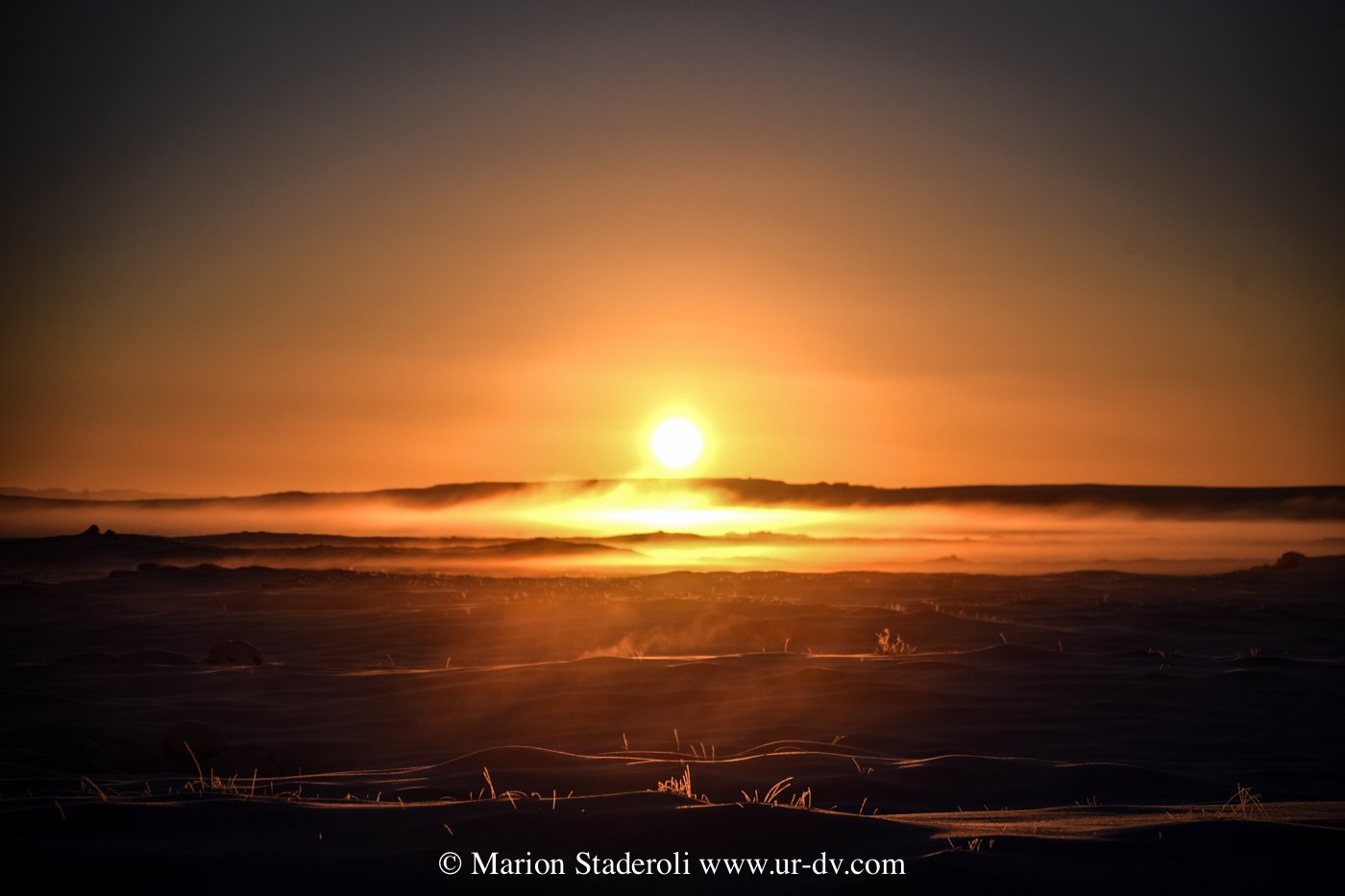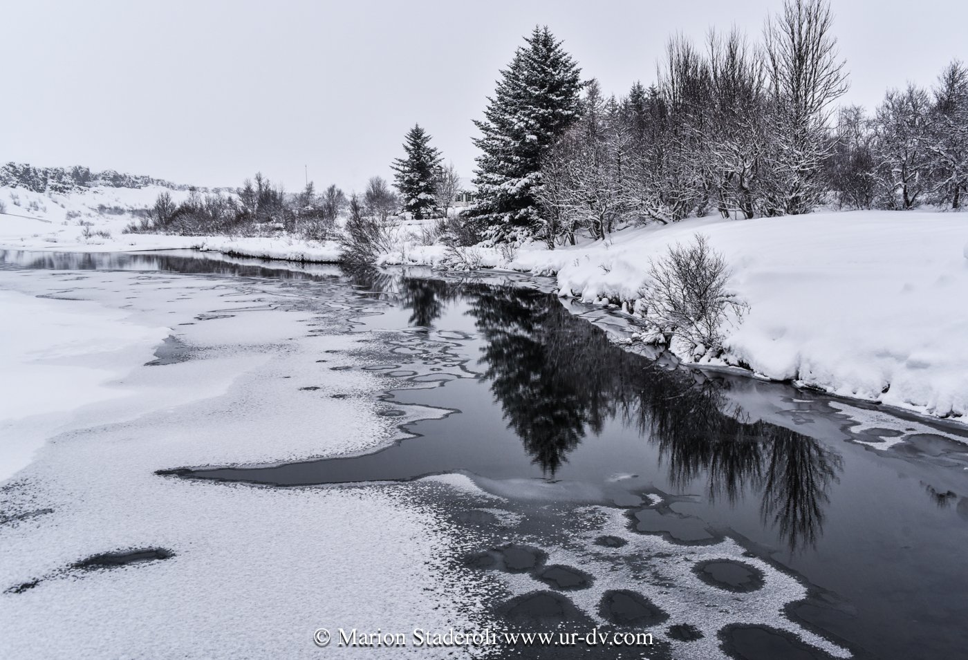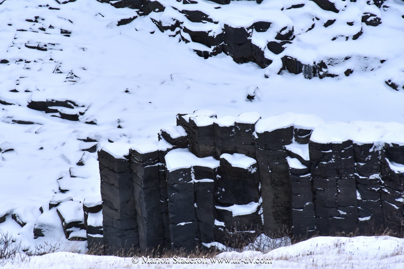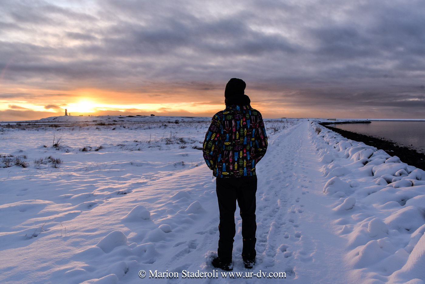 Ce matin une belle promenade dans le parc national Thingvellir. Au milieu d’un décor immaculé nous avons sillonné sur plusieurs kilomètres dans la faille du rift qui sépare les plaques tectoniques eurasiatique et nord américaine; lever de soleil, superbe vue!