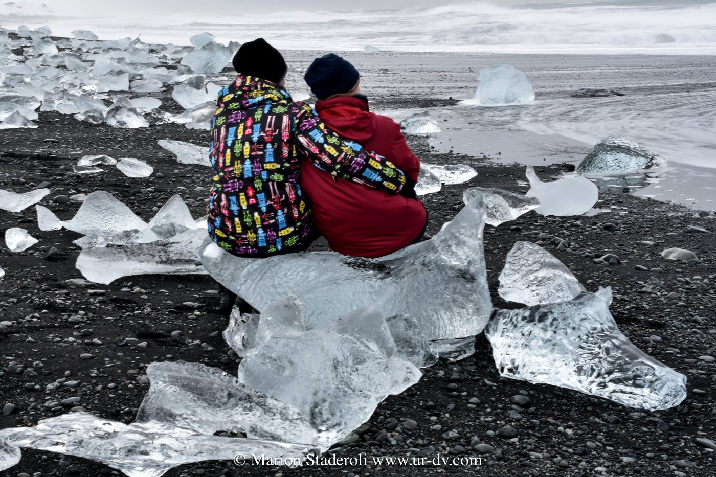 Et la fameuse « Diamond beach », la plage parsemée de gros glaçons rapportés sur le rivage par les vagues… Célèbre veut dire fréquentée, alors fini le désert, nous avons rejoint le sud et retrouvé les bus de chinois et autre asiatiques à selfie ahah! Ceci dit il suffit de s’éloigner un poil pour être seuls, ouf! (En été ça doit être autre chose!)
