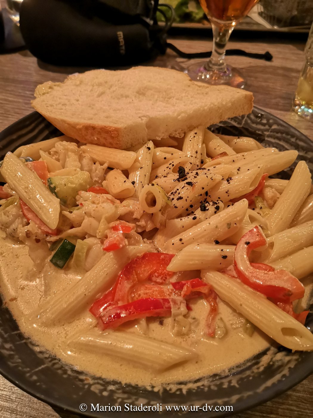 Et aujourd’hui on ne se refuse rien: après la piscine, énorme plat de pâtes aux langoustines (au kaffi Hanid, Hofn) 😋