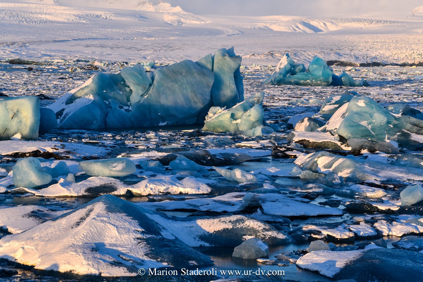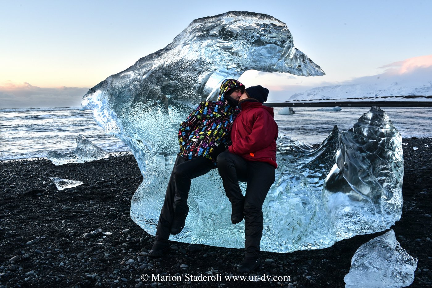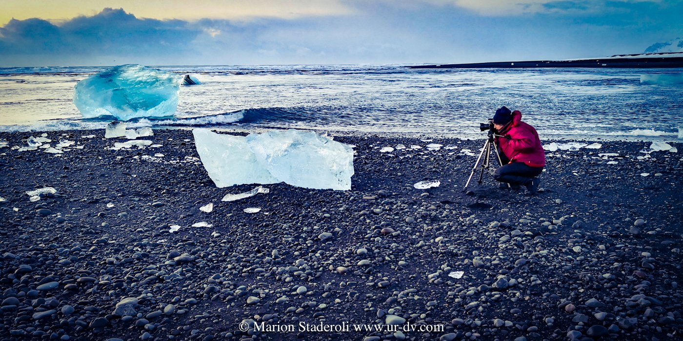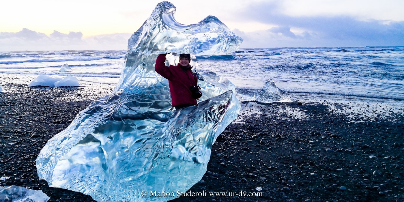 Nous sommes restés exprès dans le même secteur pour pouvoir voir les glaciers en pleine lumière (langues glacières géantes+ lagon turquoise + plage de glaçons étincelants). C’était whaou! Si Antony n’avait pas été là pour me presser je crois que je serais toujours en train de faire des photos au milieu des icebergs échoués les pieds dans l’eau 🤣