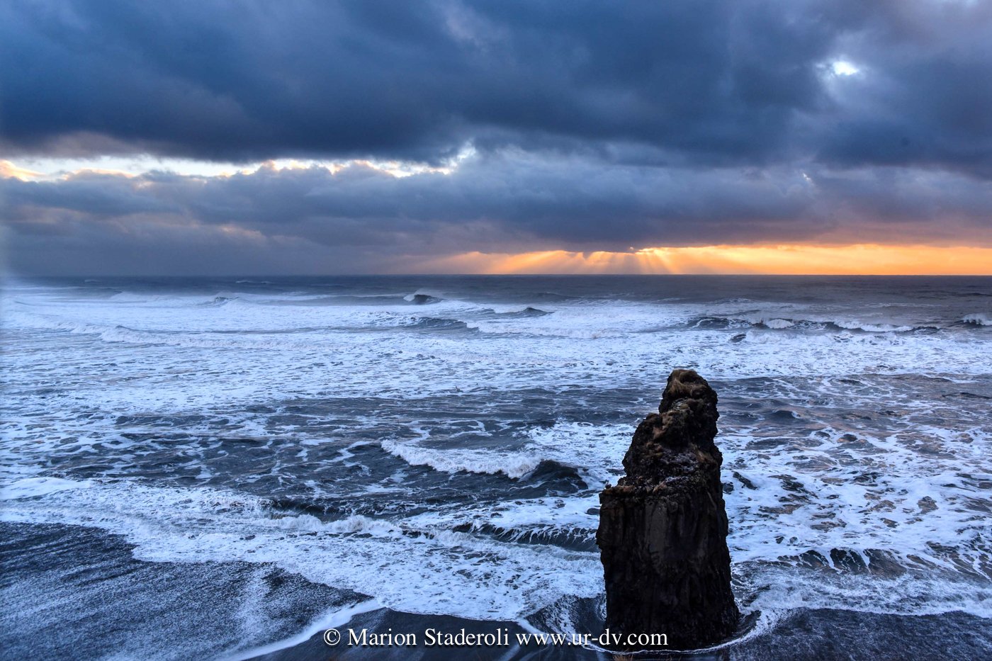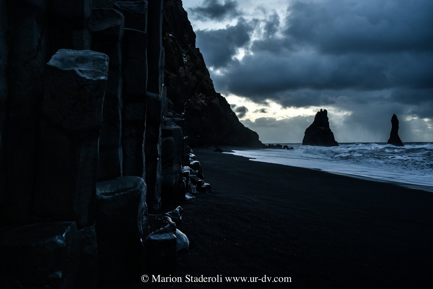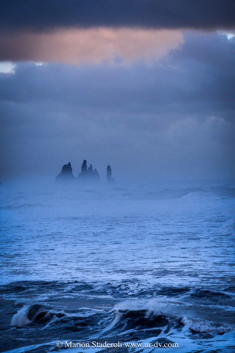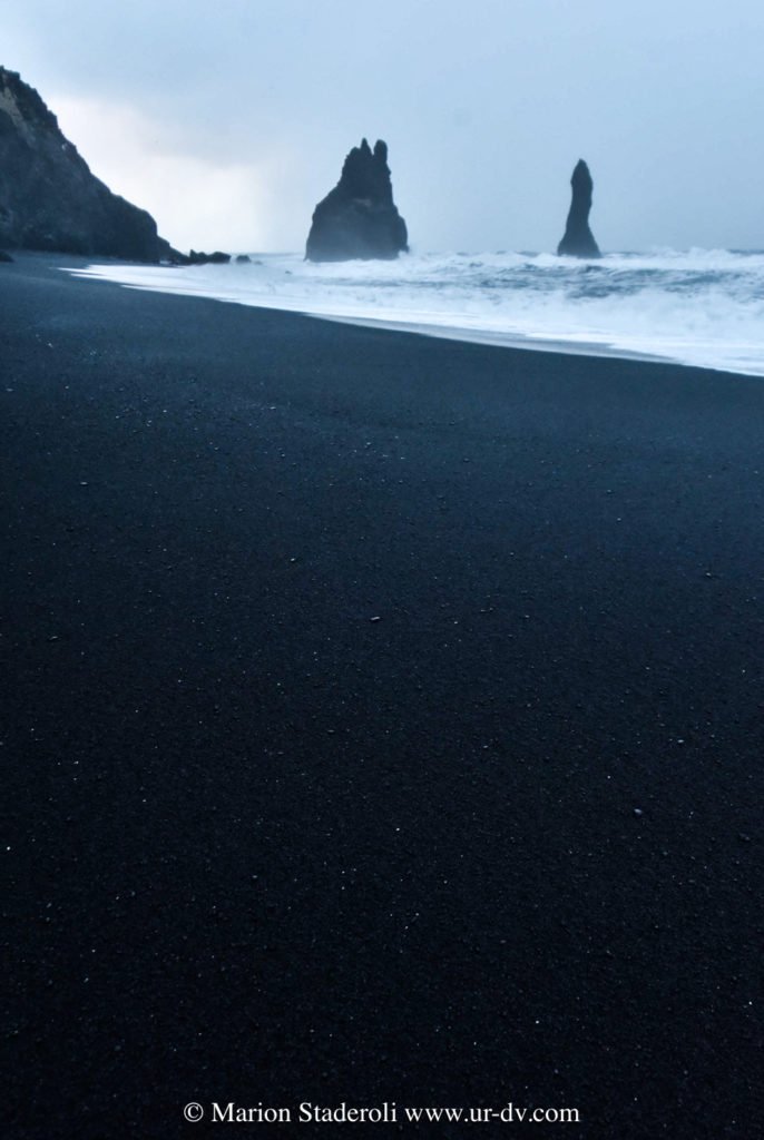 Ce matin, brouillard, ciel orageux, vent, chutes entre pluie et neige, quel belle atmosphère pour découvrir la plage de Vik, et les nombreux points du vue!