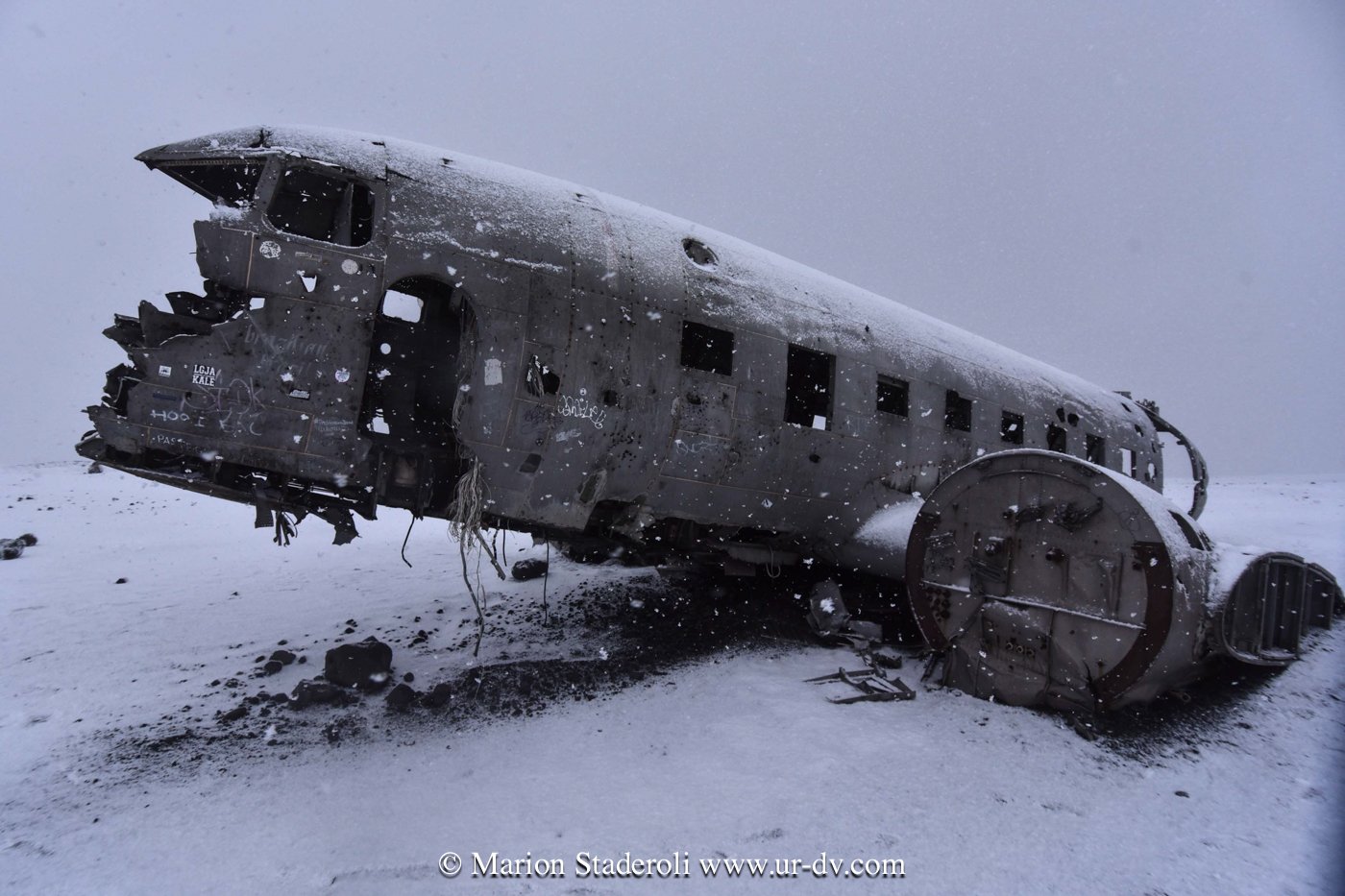 7km à pieds aller retour, et au pas de course sous des averses de neige puis de grêle (heureusement le chemin est balisé), pour atteindre le fameux avions DC3 craché en 1973. Ambiance fin du monde garantie 🤣