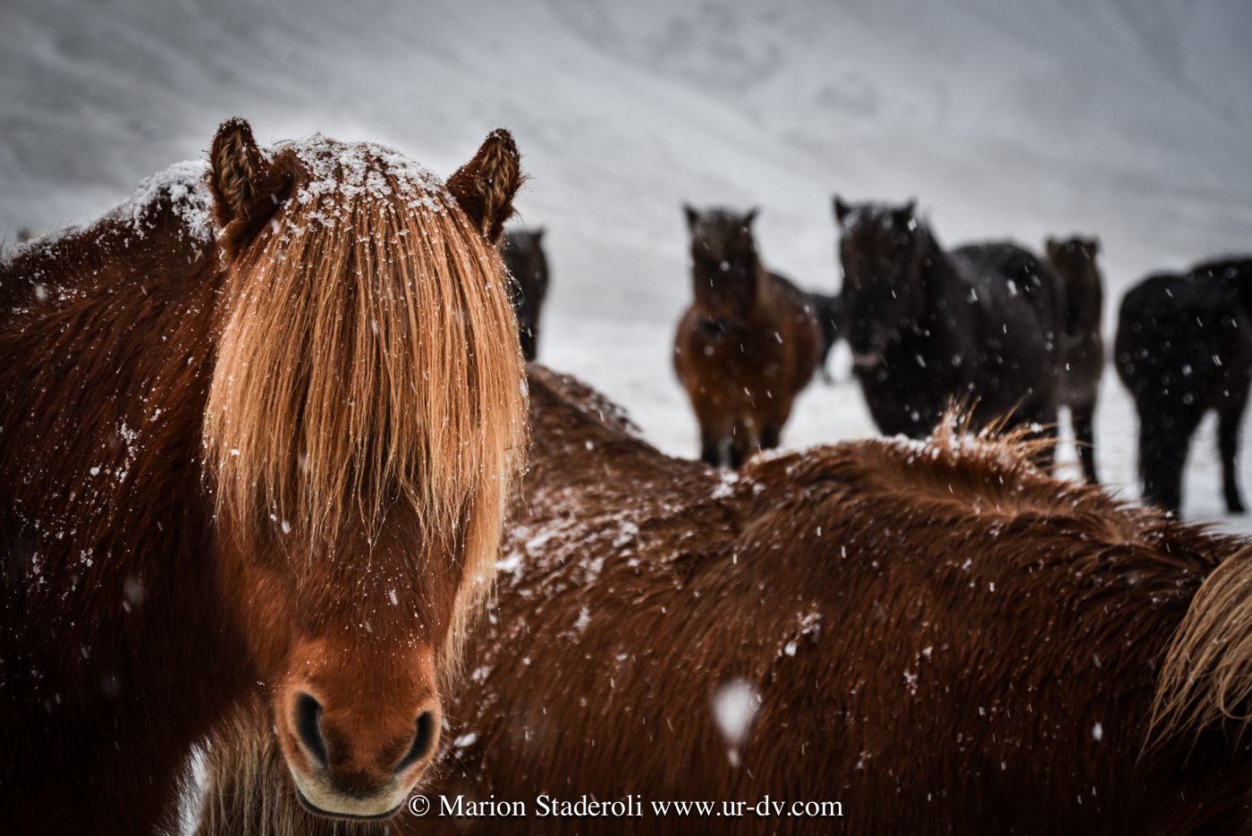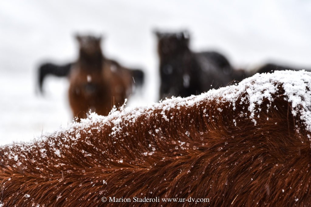 Pour finir, coup de cœur pour les chevaux, ils sont trop beaux ! Même si nous avons vu des rennes et que ça aussi, c’est extra, j’ai encore plus apprécié ces espèces de gros poneys à la frange longue. Armés de fourrure ils résistent au froid, ils sont doux, curieux et aiment les caresses.