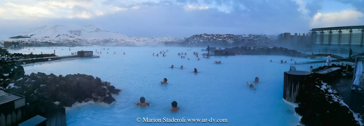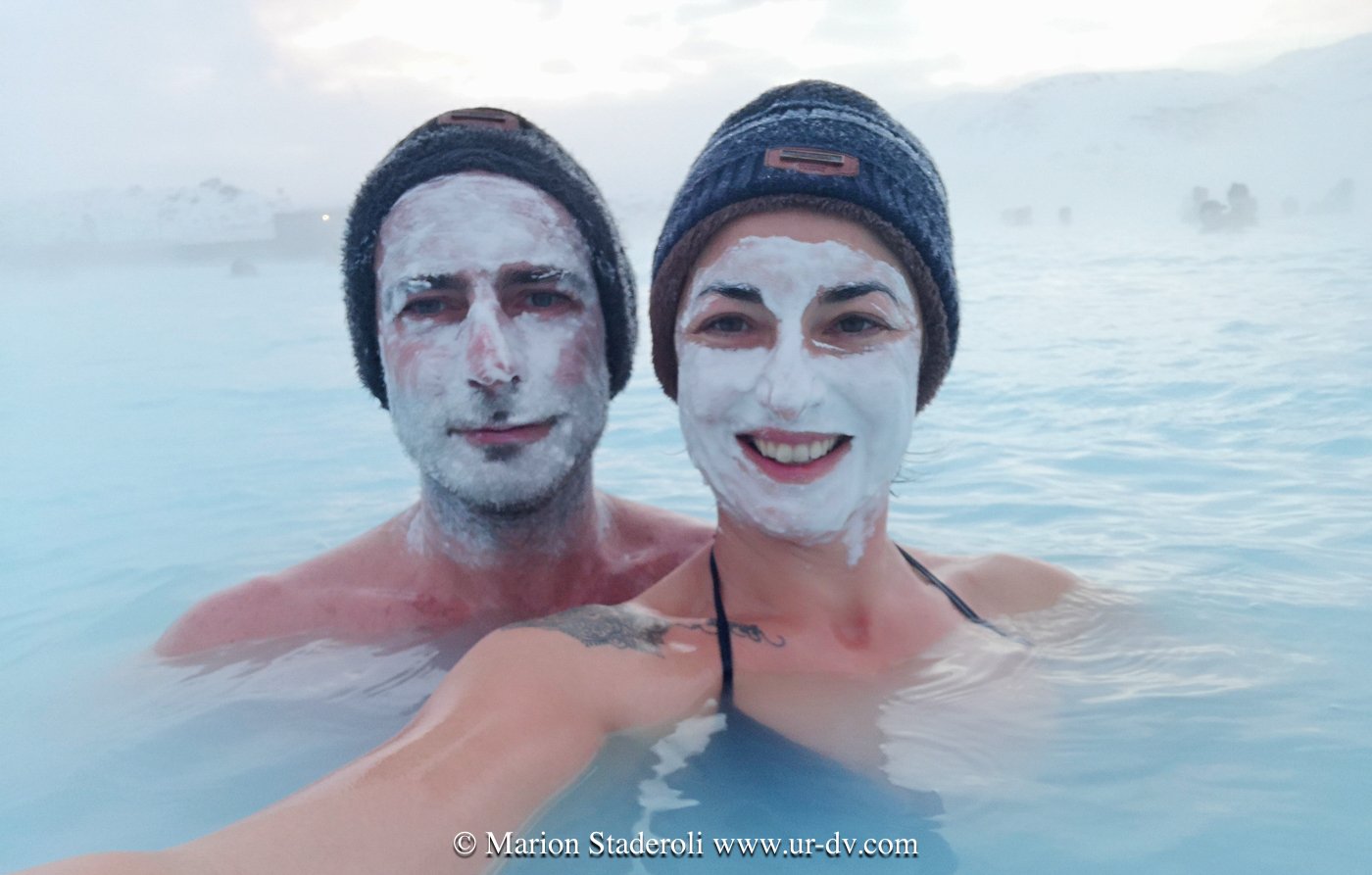 Après une bonne nuit de 11h de sommeil (et encore, réveillés par le réveil 😅) nous venons de passer 3h au « Blue lagoon ». Nous avions hésité vu le prix (80€/pers) mais finalement un spa chez nous est encore plus cher et puis là c’est spécial… L eau à 39° vient des profondeurs de la terre, elle est salée et chargée en souffre et silice, sauna hammam et masque de boue tout y est! Le tout sur 5000m2? Voilà comment clôturer agréablement ce voyage.