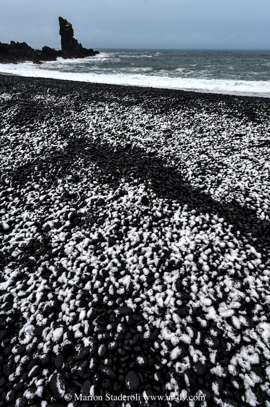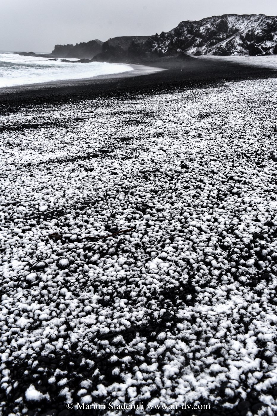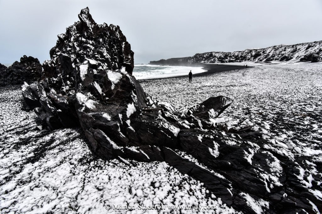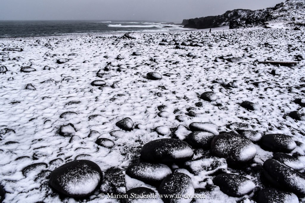 Une autre chose qui m’a subjuguée ce sont les paysages en noir et blanc. Les roches et les plages sont souvent noires et avec la neige cela créé un décor magnifique. J’aime les contrastes, j’ai été servie ! Faire des photos noir et blanc en couleur, c’est top !