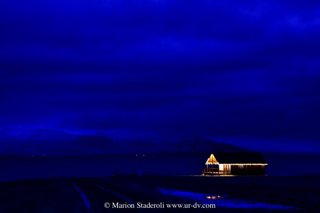 Nous avons donc atterri à Hofsos, mini village fantôme en hivers. Des maisons alignées, des guirlandes lumineuses aux fenêtres mais pas âme qui vive! Rapide balade face à la mer, et puis on reste au chaud!
