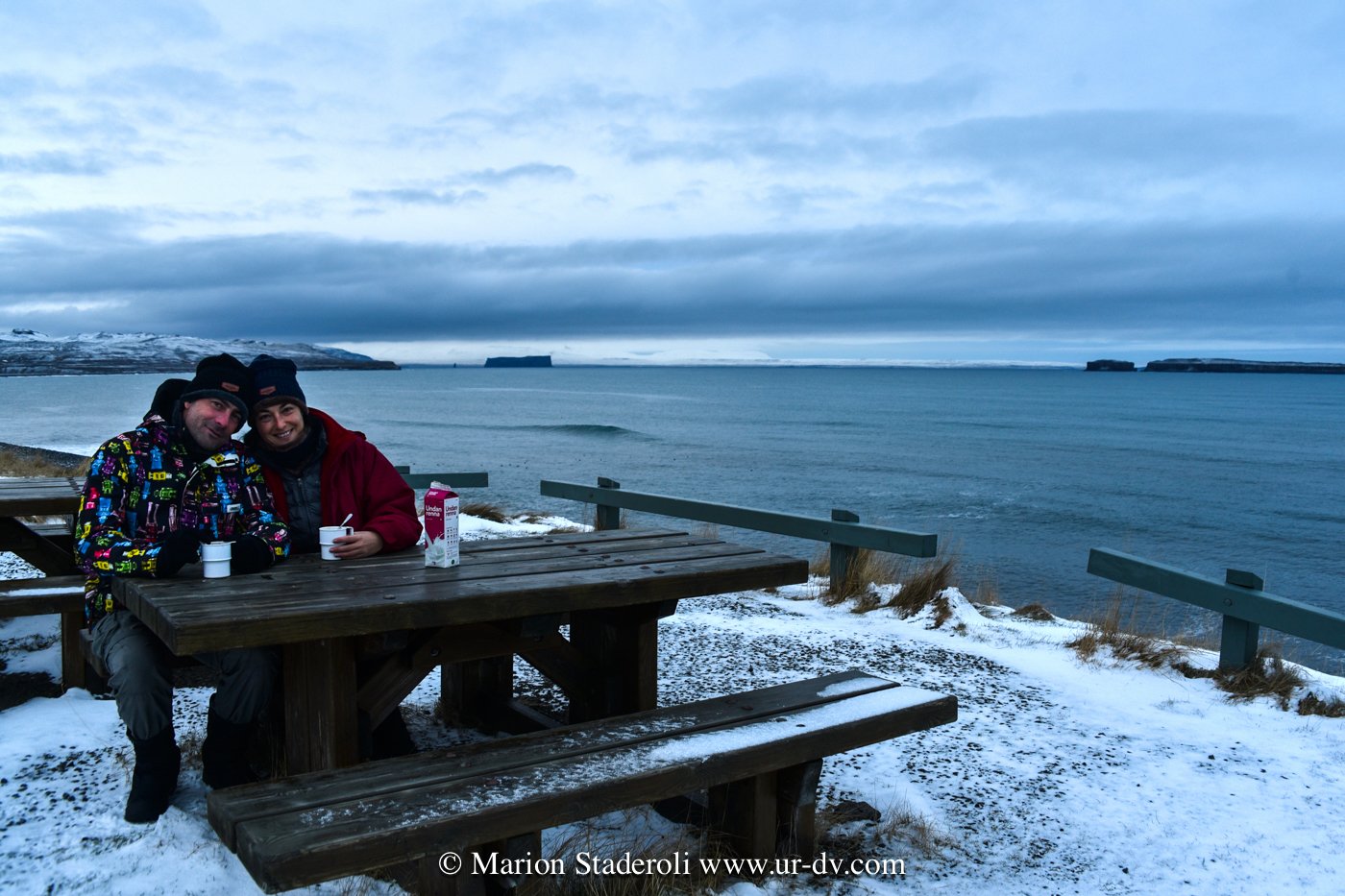 Pas mal de neige mais les routes sont nettoyées. Aujourd’hui nous avons encore roulé à travers les fjords du nord…magnifique, ce blanc et ce gris bleu… L’ambiance est terriblement apaisante 😍 Nous avons même fait un stop petit dej avec vue 😜, la classe!