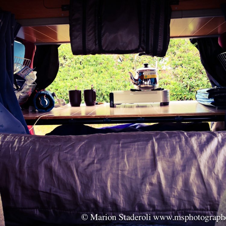 Pour entrer dans les détails, et en arrondissant, l'essence nous a coûté 200€, les parkings 60€ (durant les visites ou dans les villes et villages car le stationnement est souvent payant, alors on faisait « vite »), les visites 40€ (on a pas tout tout visité sinon ça grimpe vite), autoroute 30€ (prise que deux fois car vraiment on en pouvait plus des embouteillages! C'est très cher 20€/100km), sinon quelques restaus (peu) et la nourriture quasi exclusivement de plats à emporter dans les supermarchés. C'est plutôt très bon mais parfois monotone et on repassera pour l'ambiance! Et malheureusement le van était trop petit pour pouvoir cuisiner à l'intérieur portes fermées (et dehors ça caille dès que le soleil se couche vers 17H30 !), c'était même interdit. On a pu une seule fois déplier nos chaises et manger dehors (pas simple de trouver un endroit pour s'arrêter !)