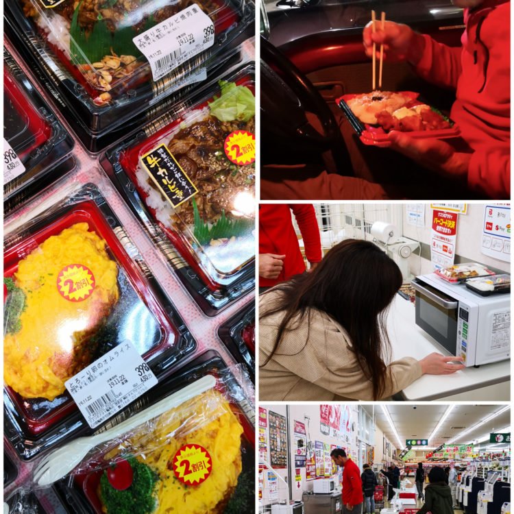 -Pour les repas, je disais donc que nous avons mangé 90% du temps dans les Kombinis, et ce pour environ 4-5€ le plat chaud que l'on peut consommer sur place quand il y a quelques tables. C'est vraiment très bon mais pas toujours varié (attention alerte transit: beaucoup beaucoup de riz , éventuellement des nouilles et quasi aucun légume!). On peut aussi se servir dans les grands supermarchés où on trouve ces plats à prix réduit à partir de 18H, et de moins en moins cher jusqu'à la fermeture. C'est cool, mais du coup il faut quand même faire chauffer et trouver où les manger...