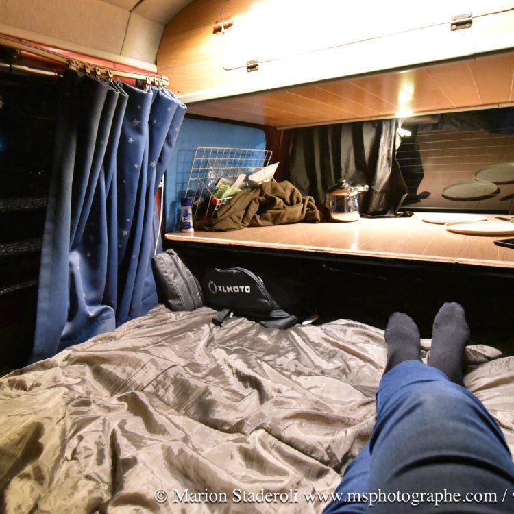 Nous voilà à notre dernière soirée en van, (j'ose dire « ouf » ??). 19H, je vous écris depuis notre «lit», dans notre van que je pourrais appeler «capsule» (oui, il n'y pas vraiment plus de place que dans un hôtel capsule !), le moteur tourne car si on coupe trop longtemps il fait froid, nous sommes sur le parking d'un 7eleven , que nous avons mis une heure à trouver, car nous en voulions un avec des tables, histoire de se poser une heure et manger tranquille, assis... mais non, impossible, cette dernière soirée est un bizutage à l'envers ? ! Pas de table, on va tuer le temps dans le van, gober un plat et se coucher très vite... puisqu'on est déjà au lit en fait haha !