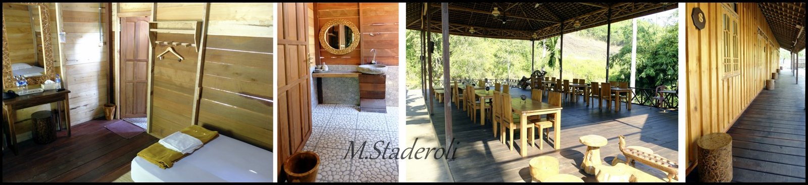 Je pense que cet hôtel est tout nouveau car dans les guides on ne parle que des deux autres hébergements. Ils ne servent pas à manger, ça c’est vraiment dommage car ils ont tout pour en plus ! Impossible de leur demander le pourquoi du comment car ils ne parlent pas anglais. La femme n’a d’ailleurs pas l’air sympathique du tout, elle nous a à peine adressé un regard même quand on est arrivés et qu’on voulait visiter… Le monsieur est plus souriant mais vient peu vers nous, j’imagine que c’est à cause de la barrière de la langue… Heureusement il y a un warung juste derrière, il est mignon propre et on y mange pour 70 cents à 1,3€ (plat + boisson). C’est délicieux.