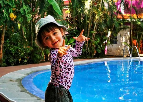 Et puis ouf, enfin à l hôtel. Lou a peu dormi et pas même mangé mais elle est toute joyeuse (en fait elle râle moins qu à la maison 😂) go à la piscine, c est mérité ❤️