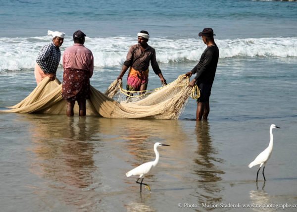 Le matin les pêcheurs sont présents sur la plage, à remonter leurs filets, un moment à ne pas rater pour se souvenir que quand même, les locaux sont bien là !