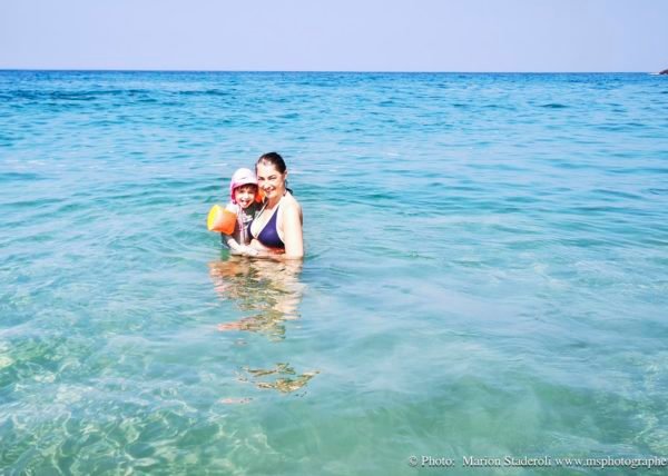 Un plouf, même si Lou était fatiguée, elle y tenait et puis une bonne sieste (pas trop longue ! Pour se caler ce soir)