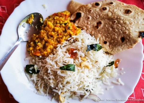 Aussitôt les affaires posées, nous sommes répartis manger au bord de l eau dans le premier restau en vue, "Leo restaurant". C'est qu on est quand même fatigués et au soleil il fait très chaud 🥵. On a mangé un bon Panir butter Massala épicé juste comme il fallait et un riz coco (avec aussi des épices et des noix de cajou), délicieux 😋 !