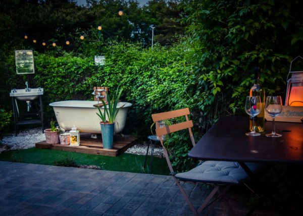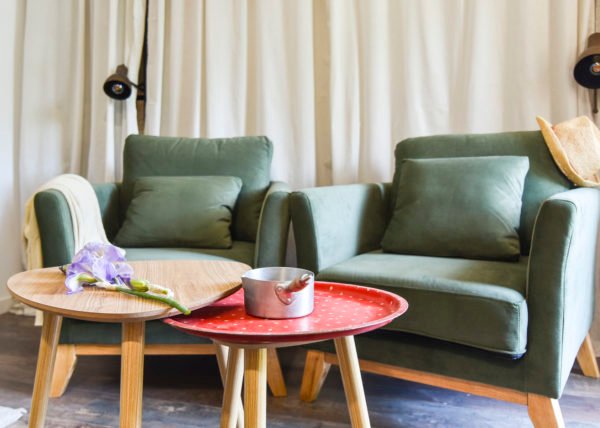L'essentiel de la vie quotidienne en Provence a lieu dehors, alors vous y trouverez des sièges bas où bouquiner, des chaises longues pour bronzer, un barbecue pour cuisiner, et bien sûr une table et des chaises pour déguster les produits locaux ramenés du marché (une table pliante permet également si besoin de prendre son repas dedans). Et la baignoire donc, pour se prélasser après une journée sous le soleil un verre de rosé à la main... Rassurez-vous il y a aussi une de douche à l'intérieur !