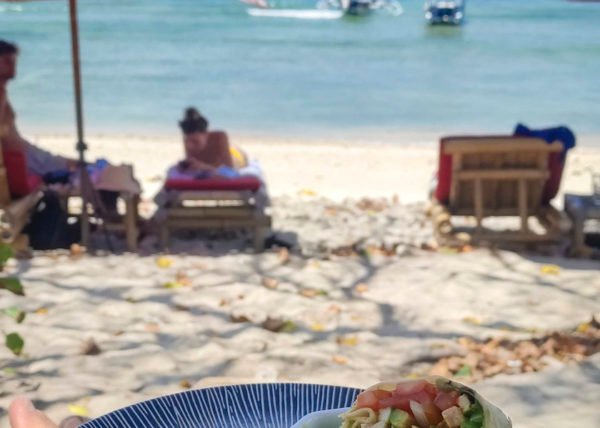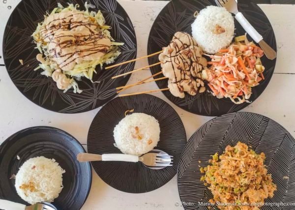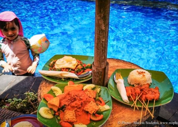 Midi on rentre à la piscine où on commande à manger, délicieux et pas plus cher qu au warung 😋