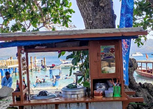 Petit dej de fruits et de banana pancakes, et vers 8h30 nous partons vers le "village" principal c est à dire au port, à 1km. Nous voulions faire le tour de l île (ça doit faire 4km) mais il est déjà un peu tard il fait trop chaud 😅