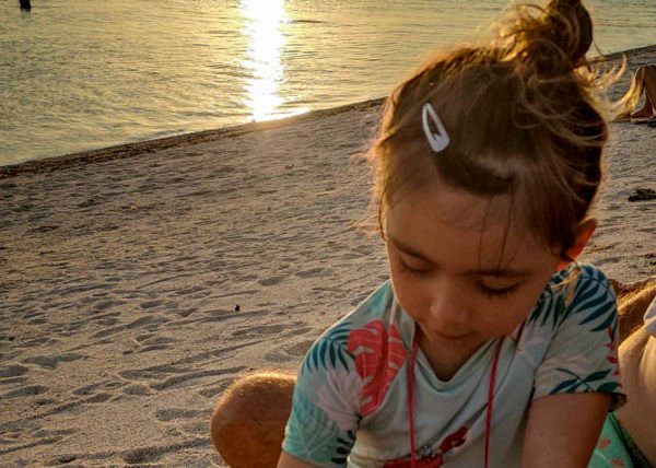 Lou tiens à faire un plouf apres les 5mn d averse, allez va, même s il est tard la récompense 😁. Puis la sieste arrive à 16h 😅 pffiu la journée file 😅 j en profite pour faire une lessive (avec les moyens du bord dans un sac étanche 😁) On la réveille à 17h15 histoire de ne pas trop la décaler et on part découvrir la plage. On serait bien allés au nord de l île pour le sunset (on ne voit le soleil que de là et de la côte Ouest forcément), mais il est déjà tard. Nous avons 4 nuits ici, ce sera pour les autres soir ! 😉