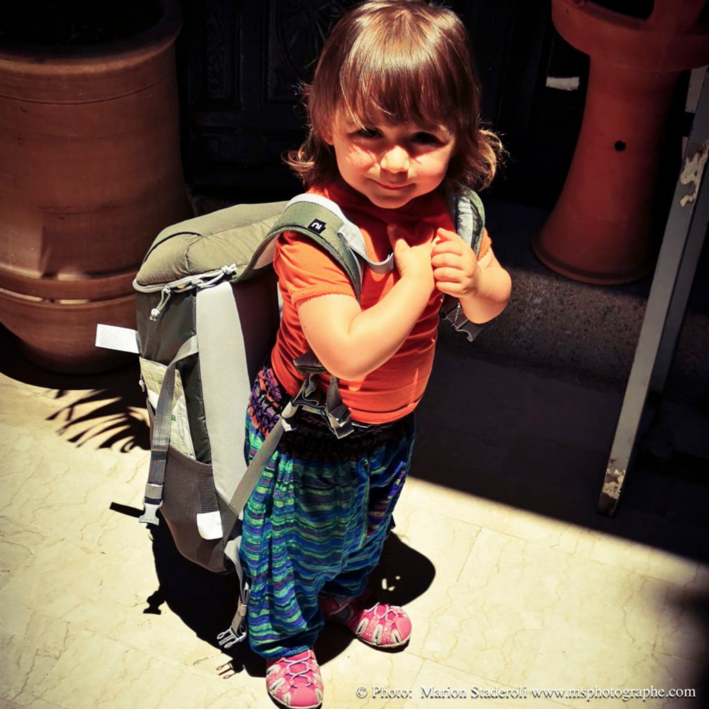 -On avait investi avant le départ dans un porte-bébé de rando (un Little-life sur vinted). C'était bien mais on s'est dit que pour le prochain voyage on ne le prendrait pas (sauf si on prévoit vraiment de longues randonnées, ce qui ne sera pas le cas). Plusieurs raisons à ça: D'une part c'est vraiment encombrant (à l'aller on l'avait mis dans un de nos sacs et bourré de vêtements, au retour on avait des souvenirs en plus, alors on l'a mis imbriqué dans notre siège auto dans une grande housse et c'est passé ainsi en "accessoire bébé" mais c'est contraignant). D'autre part Lou n'y reste pas hyper longtemps, donc après, on a ça sur le dos pour rien. Quand elle s'y endort elle n'est pas vraiment confortable, elle tombe sur le côté, et puis moi personnellement je préfère les porte-bébés physio (on a des Boba, 4G et spécial voyage), je sens beaucoup moins son poids (tout de même 15kg) et elle est bien appuyée (certes ça tient plus chaud mais bon un peu plus un peu moins..) du coup je ne l'ai portée qu'une fois, ça me faisait trop mal au dos. Donc gros volume et moins de confort ou petite pochette pour plus de confort, le choix est fait ! Mais c'est très personnel, beaucoup optent pour le sac rando.