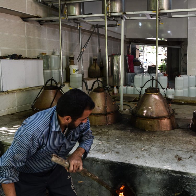 Au printemps, plusieurs villages montagneux de la région de Kashan sont en émoi. Leurs rues embaument l’odeur des roses, la fameuse rose dite « de Damas », ou rose « de Mohammadi ». Tout le monde travaille en famille et la plupart des maisons possèdent leurs alambics…