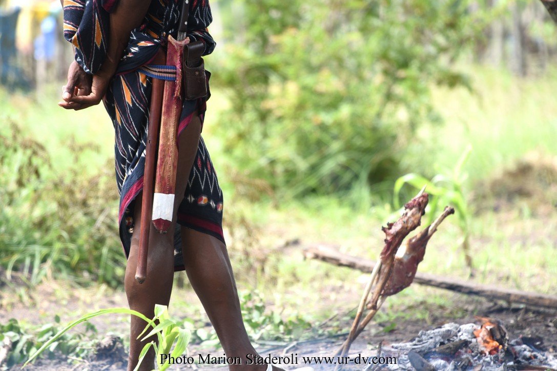 Par contre les hommes eux… rien… nous n’avons pas eu droit aux danses qu’on nous avait évoqué, soit disant ils n’étaient pas assez nombreux (ou fainéants? lol)…. C’est vrai qu’Andrew nous avait dit qu’il ferait venir du monde des villages alentours mais qu’à cause de la pluie durant la nuit, la rivière trop grosse les empêchait de venir… Nous avons par contre pu déguster de la chèvre, mais ils ne nous ont pas demandé d’en boire le sang comme ça se fait souvent!