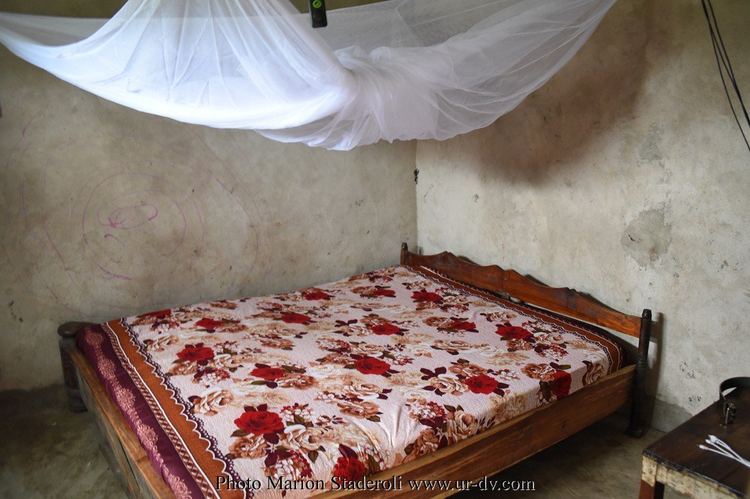 3H de route plus tard nous débarquions à Lugoba, village visiblement jamais visité par des touristes vu les visages surpris que nous y avons trouvé. Immédiatement nous avons repéré une guesthouse, sans trop savoir à quoi nous attendre nous sommes allés demander les prix. Très bonne surprise, comme je le disais plus haut, pas cher et confortable. A partir de ce village Andrew nous avait dit qu’il faudrait parcourir à pieds 7 km pour attendre leur lieu de vie. Nous aurions pu partir directement sans dormir sur place, mais je préférais faire une pose pour nous « préparer ». Et, puis partir sans vraiment savoir où aller (comme je l’ai dit pas de gps, juste la possibilité de demander notre chemin en route) et donc avec la possibilité de se perdre en plein après-midi ne me semblait pas judicieux. Mieux valait avoir la journée devant nous, « au cas où » .