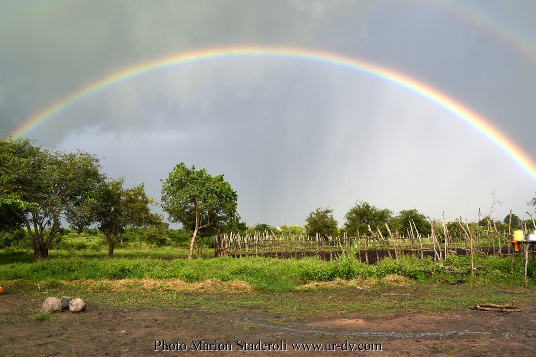 En tout nous sommes restés 4 nuits. Le temps a été plutôt clément compte tenu que c’était la saison des pluies. Des orages chaque jour mais plutôt en fin de journée, pas vraiment gênant en soit, sauf la boue qui était omniprésente et dans laquelle on pataugeait du matin au soir. La veille de notre départ le temps a semblé changer, beaucoup plus de pluie et c’est ce qui nous a décidé à bouger. De plus je ressentait le besoin d’aller « prendre l’air », de bouger, vivre ainsi en vase clos et chaque journée qui est identique à la précédente (même si Andrew faisait son possible pour nous mener à droite et à gauche) n’était pas si simple ! De longues heures d’attente parfois… Malgré tout leur dire au revoir a vraiment été dur. Ces gens sont fantastiques, toujours joyeux, toujours en train de sourire, tellement bienveillants envers nous… A mon grand regret je n’ai pas vraiment échanger avec eux à cause de la langue, j’aurais pu demander à Andrew de traduire mais ça complique un peu les rapports et je n’ai pas « osé ». Alors je garde en têtes ces visages radieux, les yeux pétillants et malicieux, les sourires étincelants, ces femmes plutôt en retrait, mais si belles avec leur crane rasé qui leur donne un port de tête incroyable, ces hommes toujours ravis de plaisanter et de communiquer, ces bouilles d’enfants et leurs rires… et puis les chants que les femmes nous ont offerts, ces voix envoûtantes…