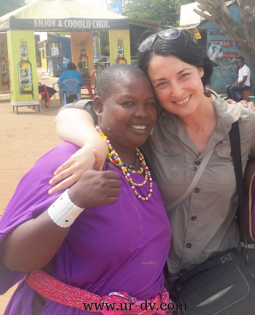Aussitôt posés nos bagages nous sortons manger dans un des nombreux bouis-bouis. On se rend compte que les gens nous observent un peu , il faut dire que les visages pâles ne doivent pas souvent se perdre dans le coin! A part ça, la population est accueillante et c est très agréable. Durant le repas nous voyons déambuler plusieurs masaï. Alors que nous nous interrogeons sur la manière de s y prendre pour trouver le village où nous devons aller le lendemain (pas simple car pas de route!) J aperçois un visage connu!! Selina! La maman de la famille chez qui nous allons!! Je n en crois pas mes yeux, elle es là. Je me lève, elle m aperçoit, pousse un cri, court et se jette dans mes bras! Je crois qu on a fait l animation du village pour le mois
