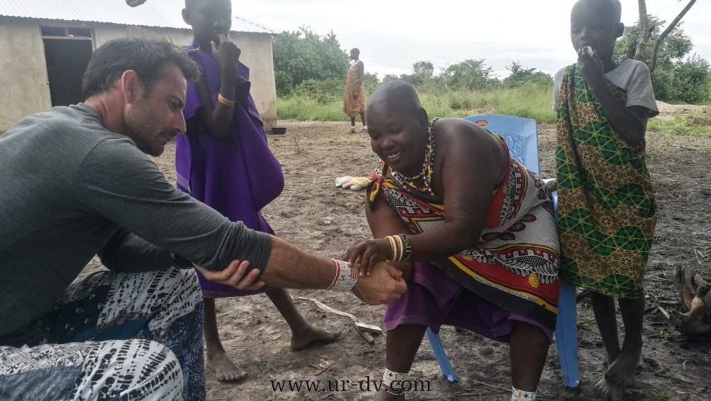 Le premier matin où nous sommes arrivés au village, à peine posés on nous en entraînés et fait changer en tenue masai